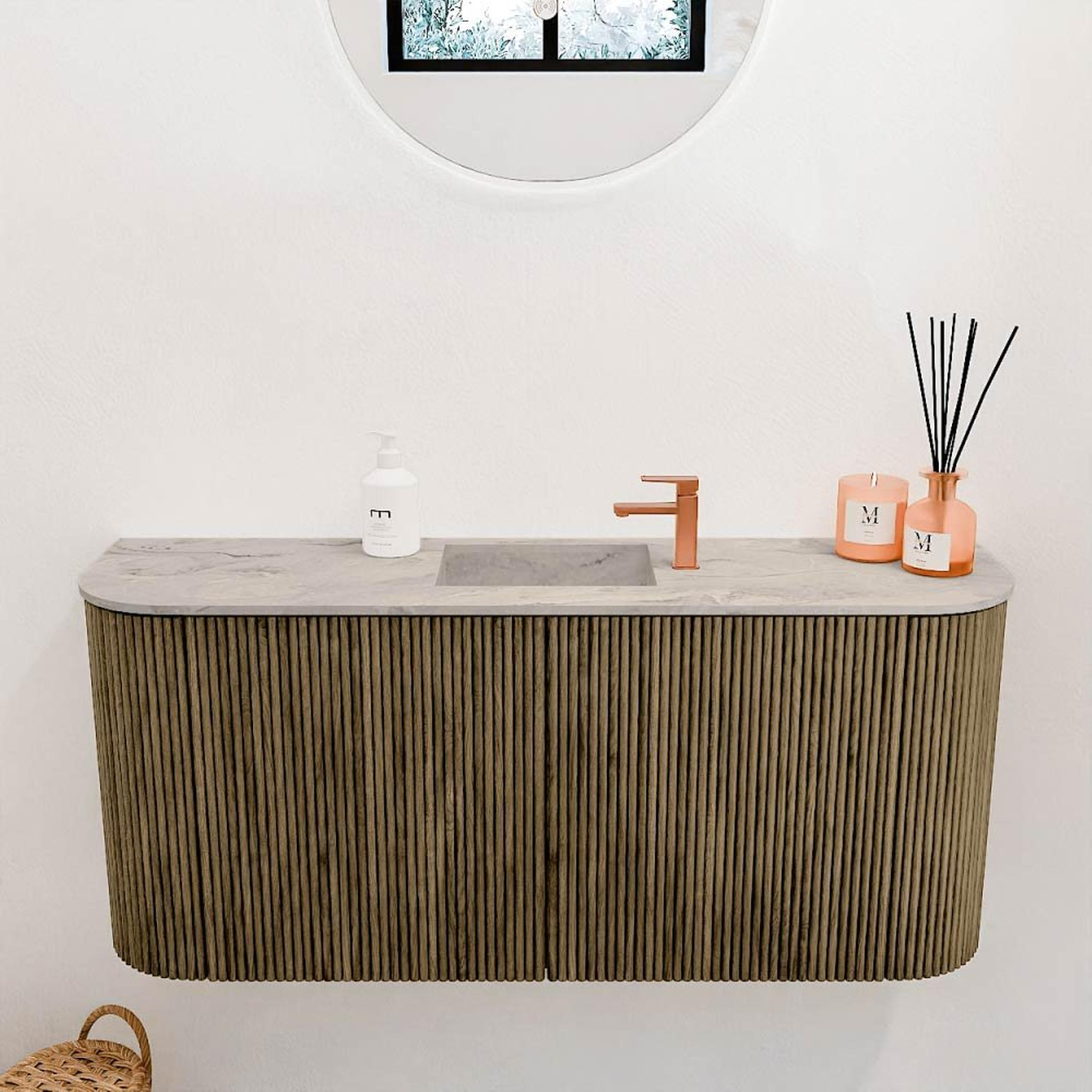 L'aspect chaleureux et naturel du chêne combiné à la couleur moderne Dusk donne à votre salle de bains une atmosphère unique et raffinée. Les coins arrondis offrent un look doux et accueillant qui diffère des lignes droites standard. Ce meuble est un véritable point fort qui s'adapte facilement à divers styles d'intérieur, du moderne au classique. Vous profitez ainsi non seulement de la fonctionnalité, mais aussi d'un design élégant qui élève votre salle de bains à un niveau supérieur.