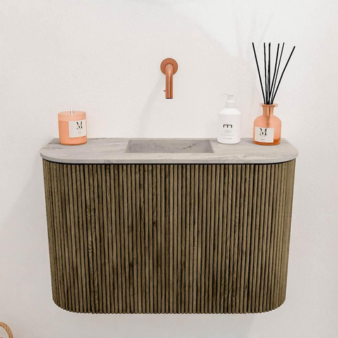 Avec ce meuble compact, vous offrez à votre salle de bains une mise à niveau élégante et pratique. Il combine une apparence raffinée avec une fonctionnalité intelligente, parfait pour les petits espaces ou un WC invité. Les teintes chaudes et naturelles apportent calme et ambiance, tandis que le meuble grâce aux coins arrondis des deux côtés a une apparence douce et accueillante. La vasque sans trou de robinet vous offre la liberté de choisir vous-même le robinet qui correspond le mieux à votre style et à vos souhaits. Ainsi, vous créez une salle de bains personnelle et harmonieuse où vous commencez et terminez chaque jour avec plaisir.