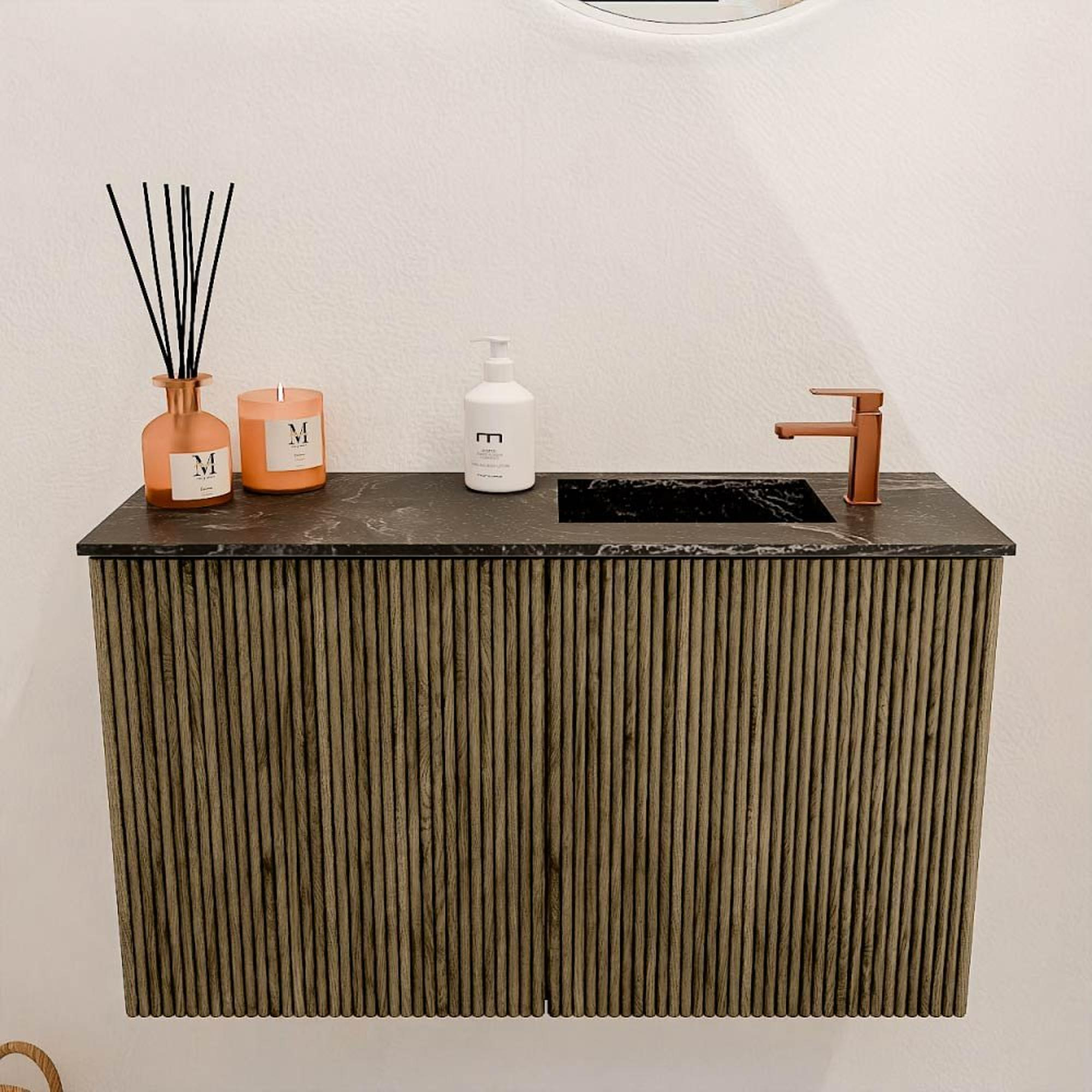 Le meuble se distingue immédiatement par les rainures verticales élégantes sur la façade, qui ajoutent une texture subtile et de la profondeur au design. La combinaison de chêne massif à l’avant avec du placage de chêne sur les côtés confère un aspect naturel et luxueux. La couleur chaude Dusk renforce cet effet et fait du meuble un véritable point focal dans votre salle de bains. Grâce au design intemporel, il s’adapte facilement à différents styles d’intérieur, du moderne au classique. Vous profitez ainsi pendant des années d’un meuble de salle de bains qui est non seulement fonctionnel, mais aussi un ajout élégant à votre intérieur.