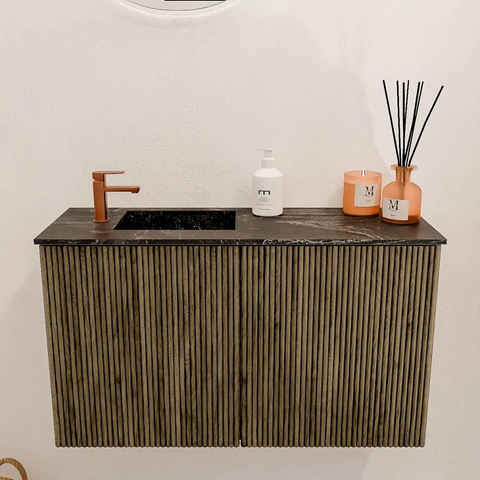 La combinaison de la couleur Dusk avec la vasque Lava crée un aspect intemporel et élégant. Ce meuble est conçu avec un souci du détail et dégage une impression de qualité. La finition douce et mate du plan de travail et l'aspect subtil marbré de la vasque donnent à votre salle de bains une ambiance luxueuse et moderne. Grâce au design minimaliste aux lignes épurées, le meuble s'intègre facilement dans divers styles d'intérieur, de l'industriel au scandinave. Ainsi, vous profitez d'une salle de bains qui est non seulement fonctionnelle, mais aussi un véritable point focal.