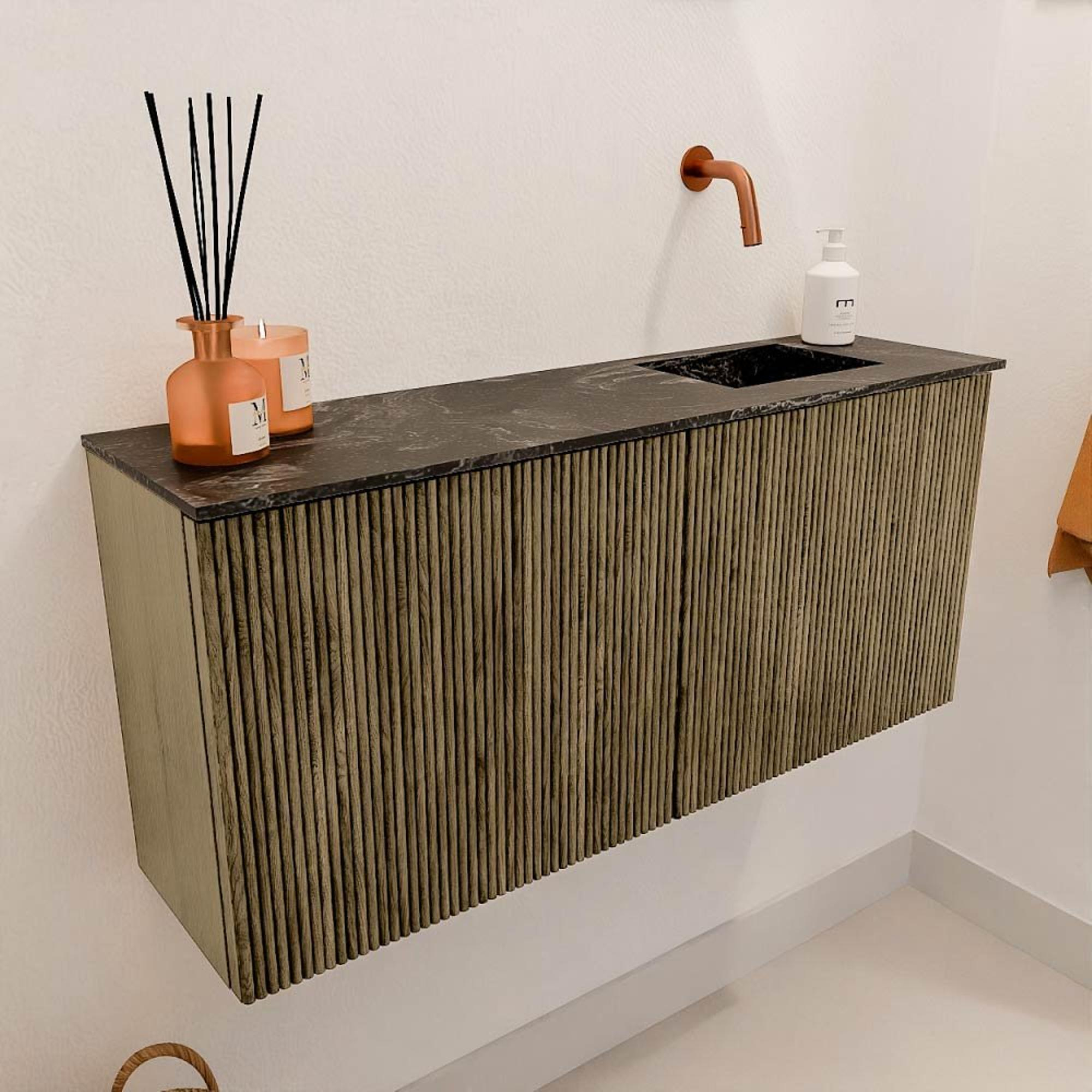 Mondiaz JOYA-DLUX 90cm meuble de salle de bains - couleur Dusk - Vasque FAYE position Droite Sans trou de robinet couleur Lava.