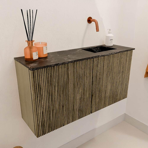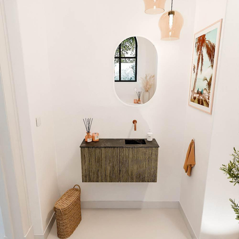 Une solution compacte pour salle de bains qui combine style et fonctionnalité sans effort. Ce meuble transforme votre petite salle de bains ou WC invités en un espace moderne et apaisant où vous commencez chaque jour avec plaisir. Grâce à son design élancé avec une profondeur de seulement 24,5 cm, il s’adapte parfaitement aux petits espaces sans sacrifier le rangement ni le confort. La couleur chaude et profonde Dusk confère au meuble une apparence intemporelle qui s’harmonise aisément avec divers styles d’intérieur. La vasque, réalisée en Lava et placée à droite, offre un endroit pratique et élégant pour se laver les mains, tandis que l’absence de trous de robinet vous donne la liberté de choisir le robinet qui correspond le mieux à vos souhaits. Ainsi, vous créez une salle de bains qui vous ressemble, avec une attention aux détails et une qualité que vous apprécierez au quotidien.
