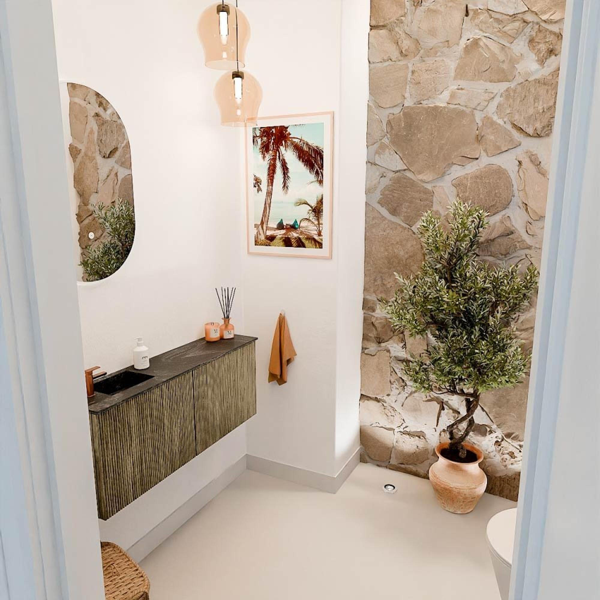 Les rainures verticales dans le chêne massif donnent au meuble une apparence raffinée et exclusive. Ce détail crée une texture subtile qui rend l'ensemble vivant, sans dominer. La combinaison de la couleur chaude Dusk avec la vasque Lava profonde crée un contraste moderne qui donne immédiatement un aspect luxueux à votre salle de bains. Grâce aux matériaux et couleurs intemporels, ce meuble s'intègre facilement dans les salles de bains classiques comme modernes. Vous créez ainsi un espace qui est non seulement fonctionnel, mais aussi un véritable point focal.