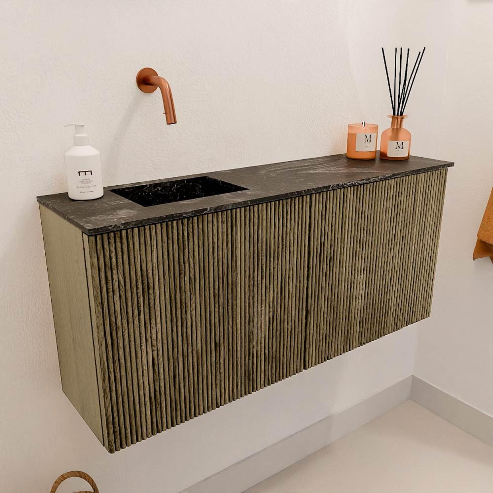 Mondiaz JOYA-DLUX 90cm meuble de salle de bains - couleur Dusk - Vasque FAYE position Gauche Sans trou de robinet couleur Lava.