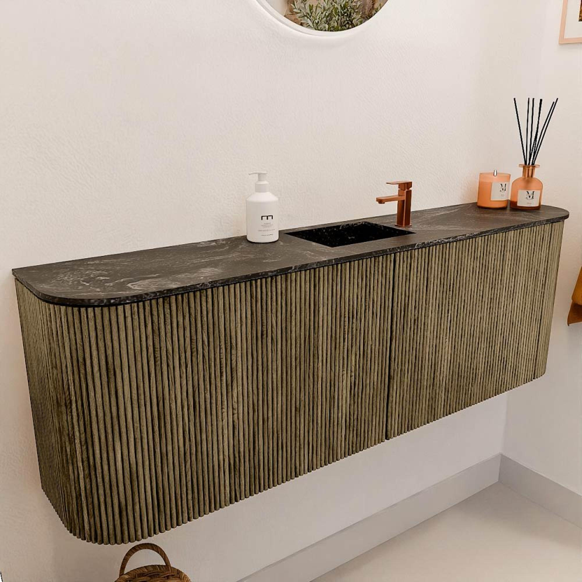 Le meuble se distingue immédiatement par son design élégant à l'aspect naturel. Les façades sont en chêne massif, ce qui est non seulement durable mais aussi d'un charme intemporel. La couleur chaude Dusk combinée à la vasque Lava crée une ambiance raffinée qui donne à votre salle de bains un aspect exclusif. Grâce aux courbes subtiles sur les côtés gauche et droit, le meuble acquiert un caractère unique qui s'adapte facilement à différents styles d'intérieur. Vous profitez ainsi d'une salle de bains à la fois moderne et accueillante.
