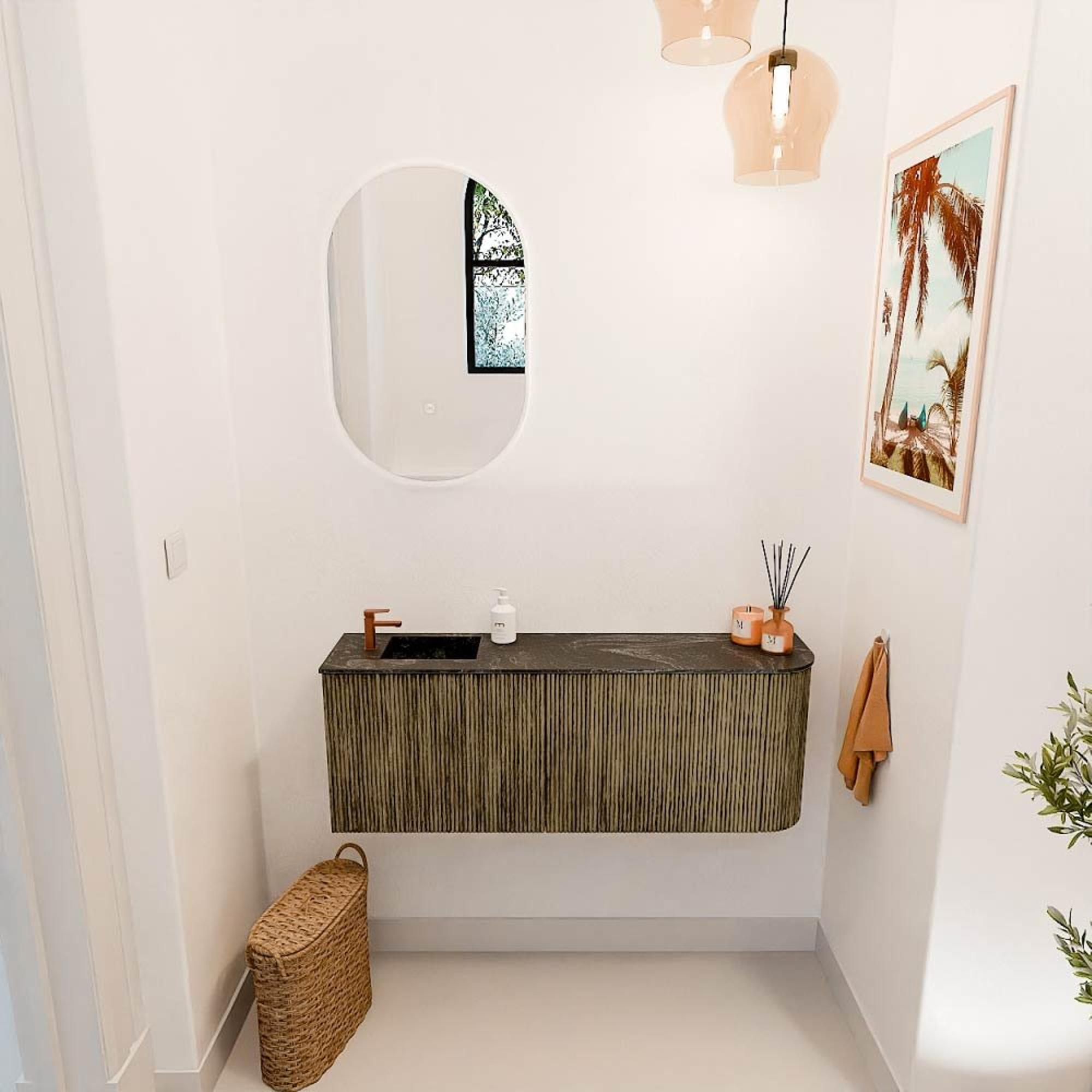 Mondiaz JOYA-DLUX Meuble de salle de bains 111.6cm - arrondi droit couleur Dusk - Vasque FAYE position Gauche 1 trou de robinet couleur Lava