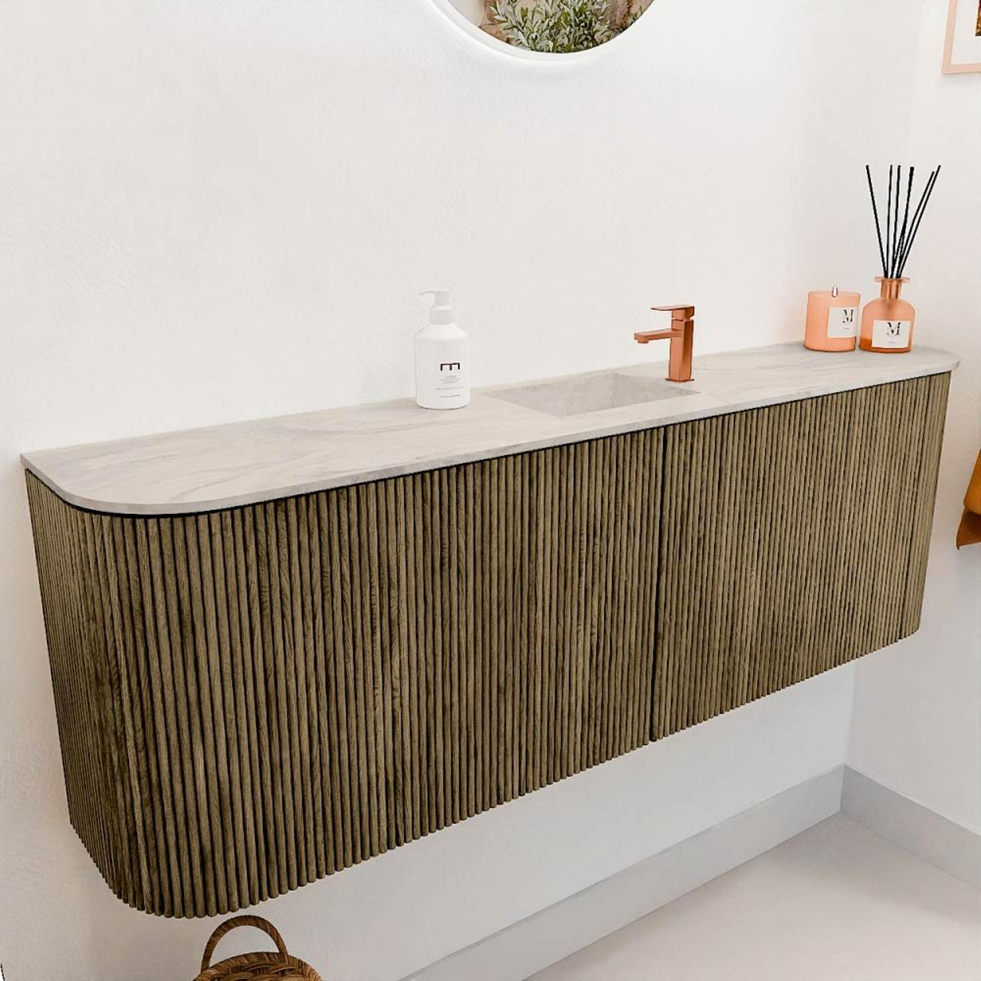 Mondiaz JOYA-DLUX meuble WC 123,2 cm - arrondi à gauche et à droite couleur Dusk - lavabo FAYE position centrale 1 trou de robinet couleur Ostra.