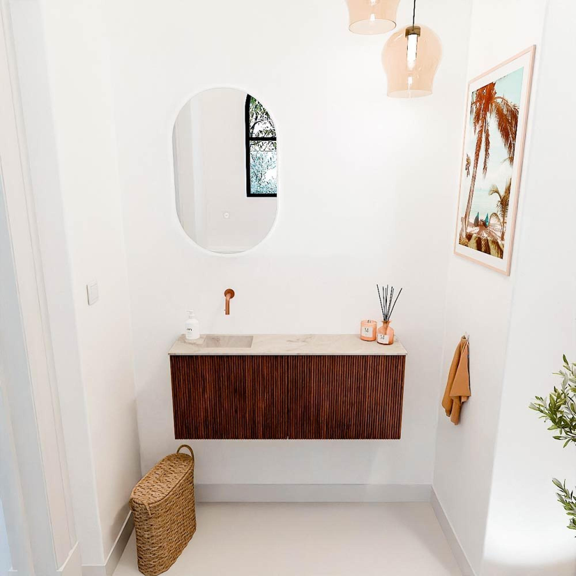 Mondiaz JOYA-DLUX 100cm meuble de salle de bains - couleur Ruby - Vasque FAYE position Gauche Sans trou de robinet couleur Frappe.