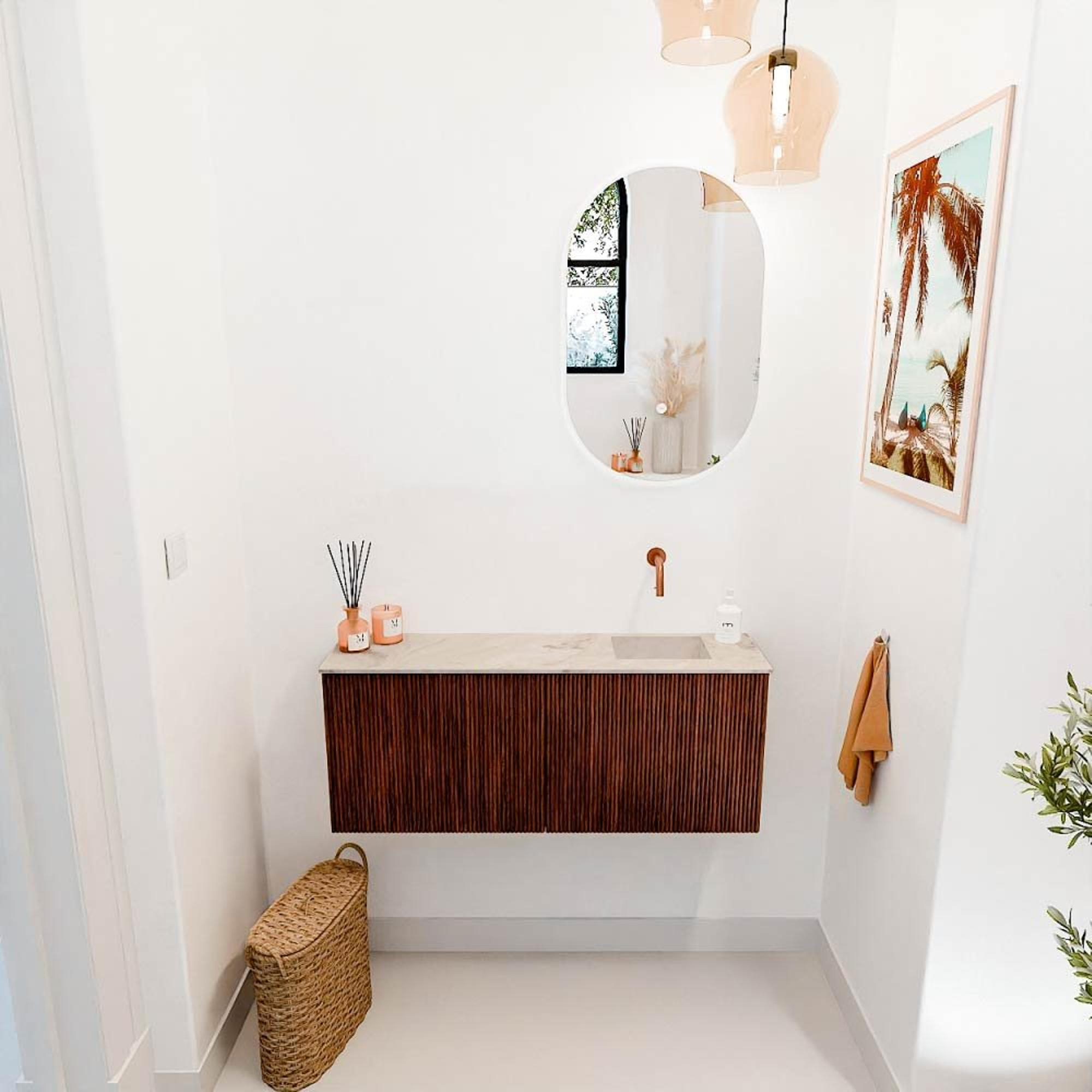 Mondiaz JOYA-DLUX 100cm meuble de salle de bains - couleur Ruby - Vasque FAYE position Droite Sans trou de robinet couleur Frappe.