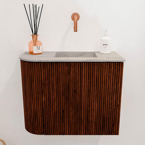 Mondiaz JOYA-DLUX Meuble de salle de bains 51,6cm - arrondi gauche couleur Ruby - Vasque FAYE position Droite Sans trou de robinet couleur Glace