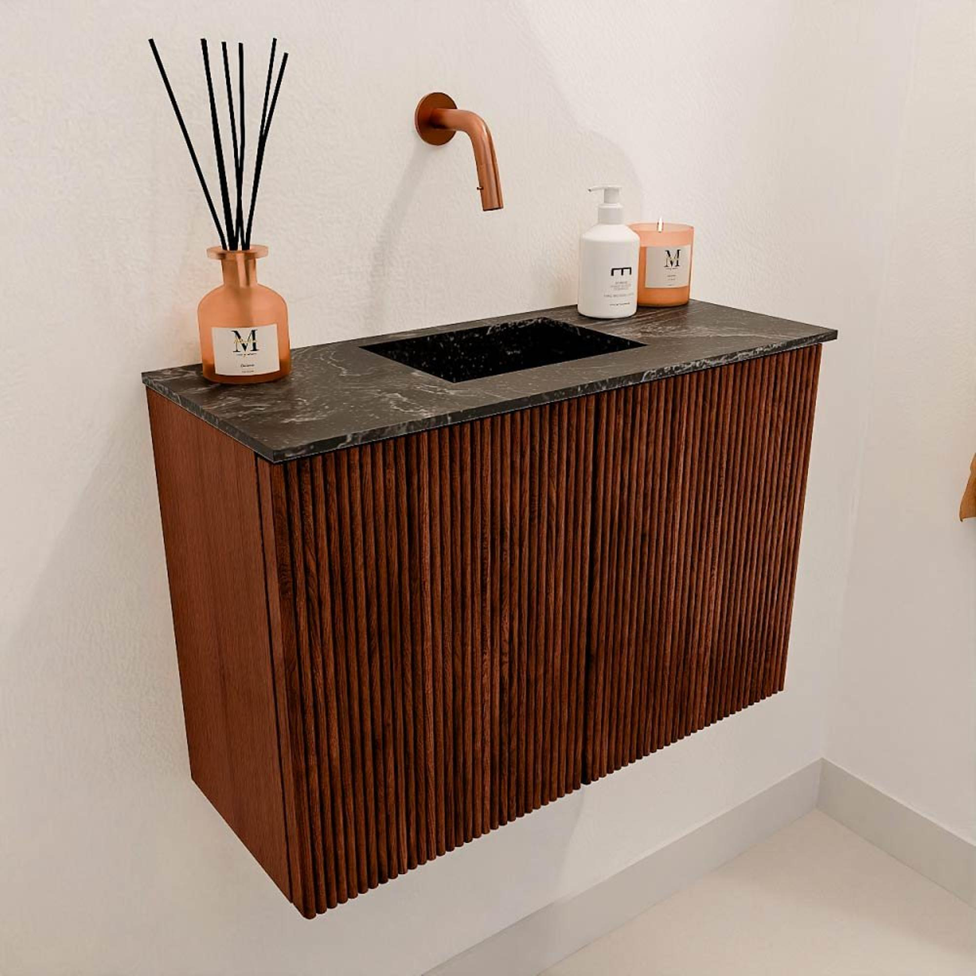 - Couleur : meuble Ruby avec vasque Lava – une combinaison de couleurs chaude et moderne