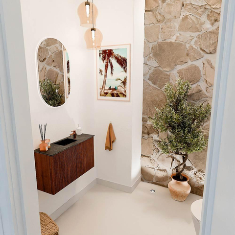 Avec ce magnifique meuble, vous donnez immédiatement à votre salle de bains une ambiance chaleureuse et luxueuse. Il combine un design intemporel avec une fonctionnalité pratique, ce qui le rend non seulement beau à voir, mais aussi parfaitement adapté à vos routines quotidiennes. La couleur profonde et riche Ruby apporte un accent chaleureux, tandis que la vasque avec un trou de robinet central vous offre tout l'espace nécessaire pour vous laver confortablement. Grâce aux dimensions bien pensées, ce meuble s'intègre facilement dans les salles de bains compactes comme spacieuses, transformant votre espace en une oasis de calme et de style. Ainsi, vous profitez chaque jour d'une salle de bains qui est non seulement fonctionnelle, mais aussi invitante pour la détente et le confort.