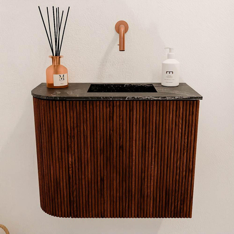 Mondiaz JOYA-DLUX Meuble de salle de bains 51,6cm - arrondi gauche couleur Ruby - Vasque FAYE position droite Sans trou de robinet couleur Lava