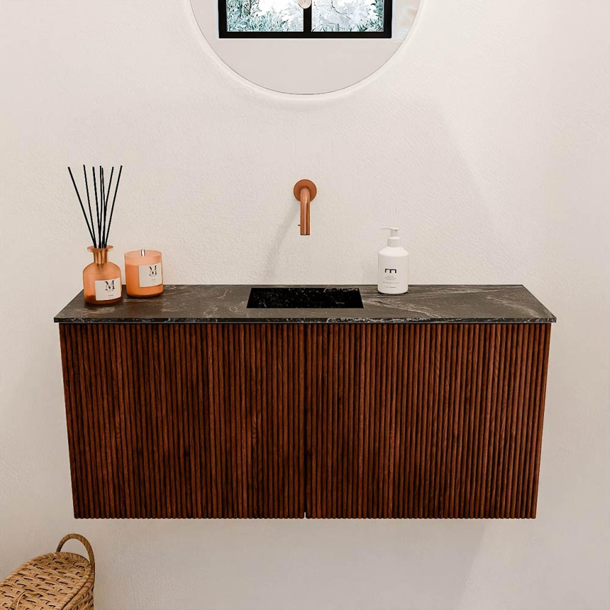 La couleur Ruby frappante donne au meuble une apparence chaleureuse et accueillante qui donne immédiatement du caractère à votre salle de bains. Les rainures verticales dans le design apportent un détail subtil et moderne qui distingue le meuble des meubles de salle de bains standards. La combinaison avec la vasque Lava crée un beau contraste à la fois intemporel et tendance. Ce meuble s'intègre facilement dans divers styles d'intérieur, du moderne au classique, et élève l'apparence de votre salle de bains à un niveau supérieur. Vous profitez ainsi non seulement d'un meuble fonctionnel, mais aussi d'un véritable accroche-regard qui reflète votre style personnel.