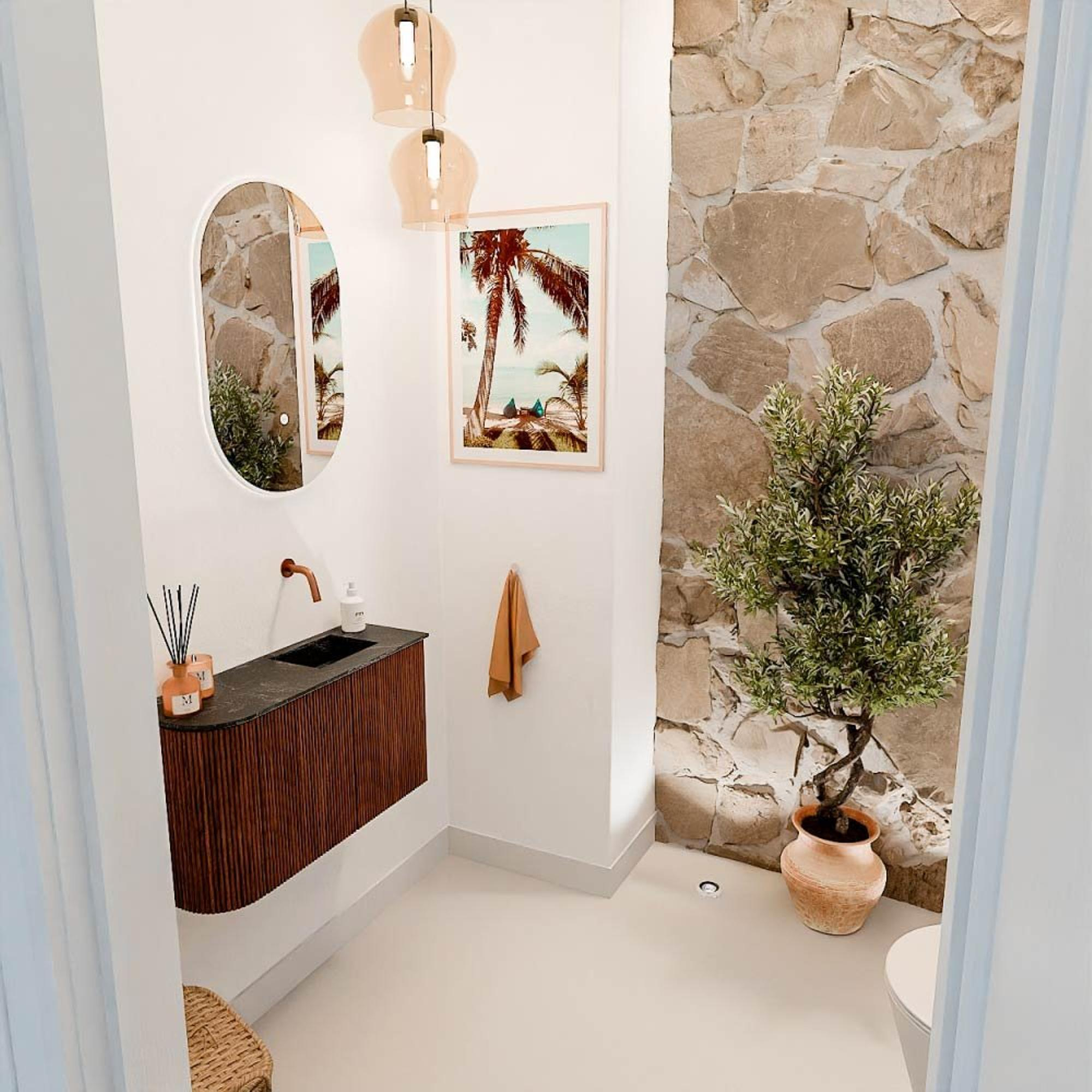 - Vasque Faye couleur Lava, positionnée à droite sans trou de robinet pour une liberté maximale dans le choix du robinet