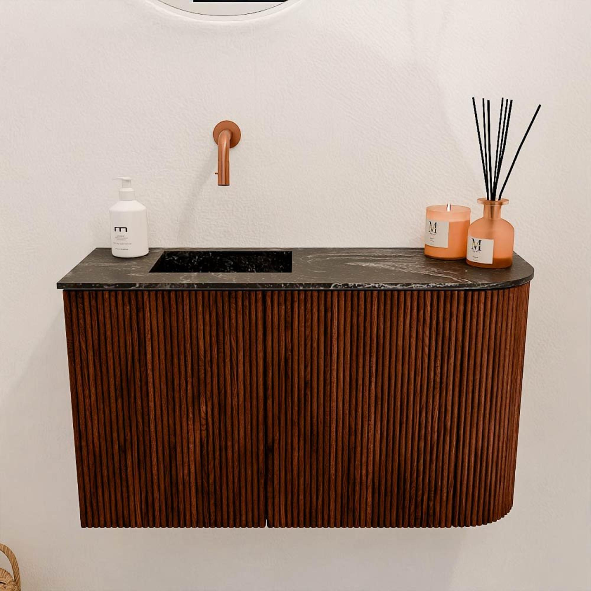 Mondiaz JOYA-DLUX Meuble de toilette 71,6cm - arrondi droit couleur Ruby - Lavabo FAYE position Gauche Sans trou de robinet couleur Lava.