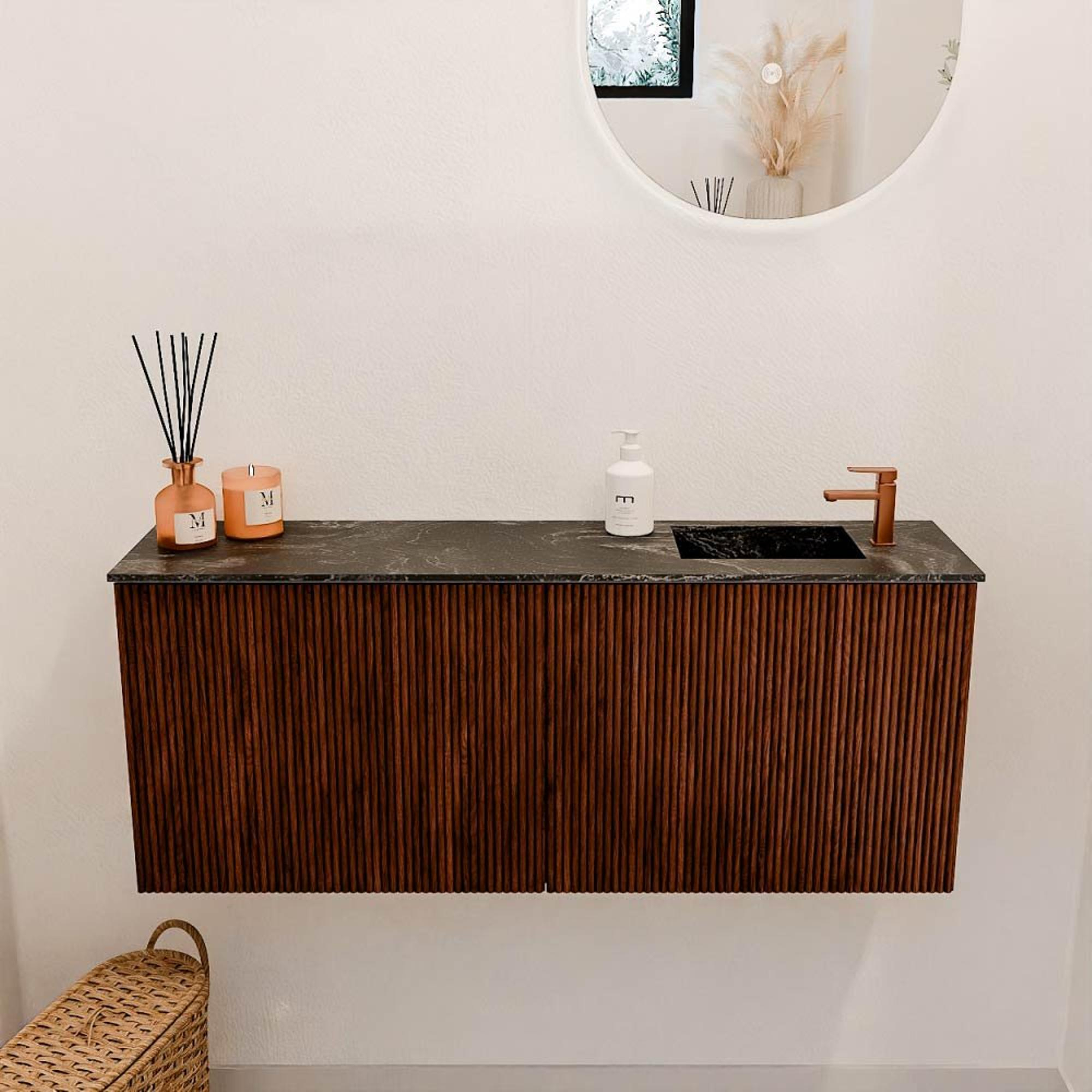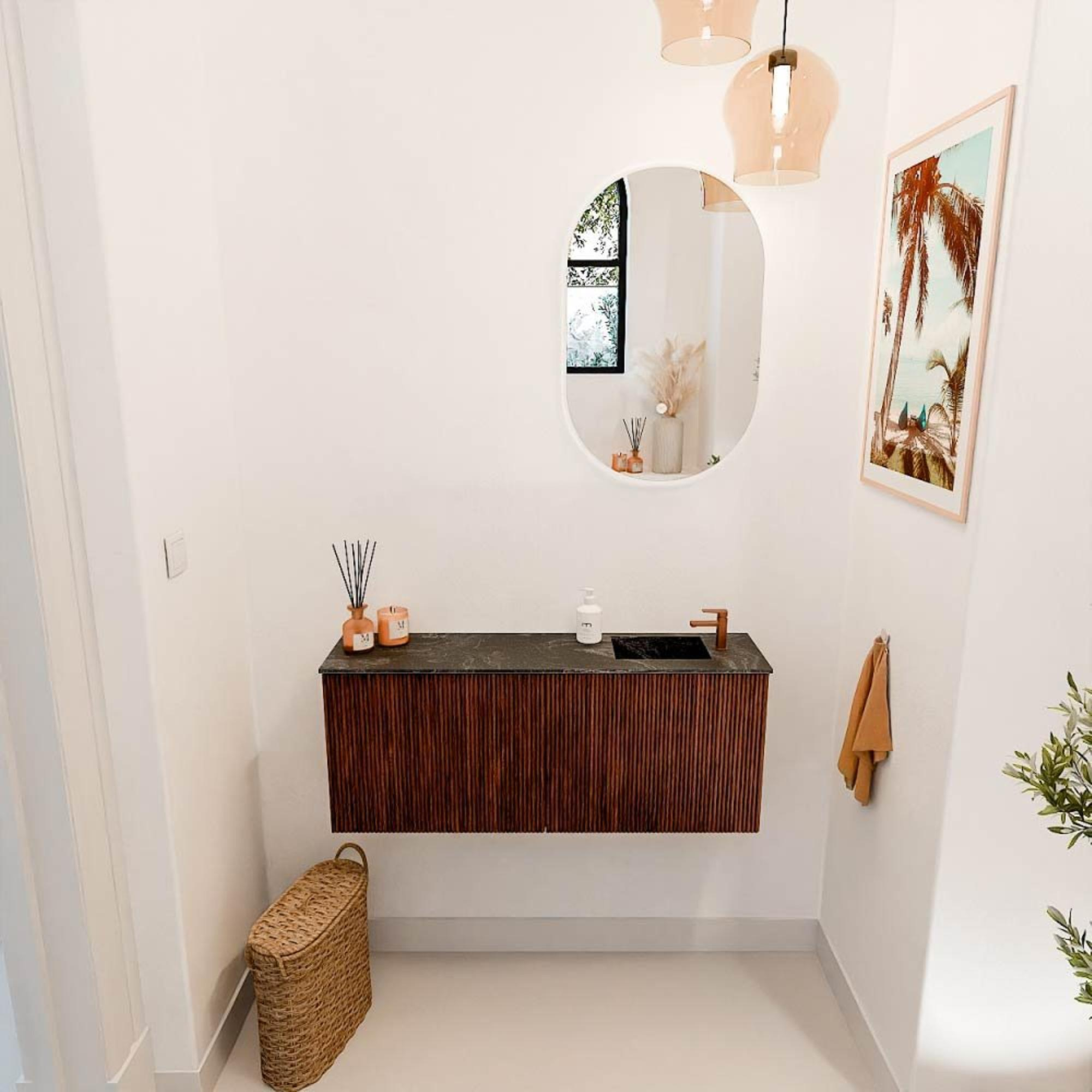 Mondiaz JOYA-DLUX 100cm meuble de salle de bains - couleur Ruby - Vasque FAYE position Droite 1 trou de robinet couleur Lava.