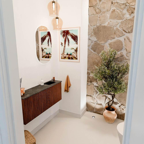 Le meuble se distingue immédiatement par sa couleur Ruby frappante, qui apporte chaleur et caractère à votre salle de bains. La vasque couleur Lava avec un trou de robinet positionné à droite rend l'ensemble particulier et moderne. Cette combinaison de couleurs assure un look frais et contemporain qui s'adapte facilement à différents styles d'intérieur. Grâce au design épuré et minimaliste, le meuble convient aussi bien aux salles de bains classiques que modernes. Vous créez ainsi une atmosphère harmonieuse dans laquelle vous commencez et terminez chaque jour avec plaisir.
