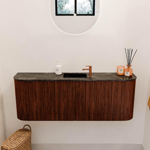 Mondiaz JOYA-DLUX 113.2cm meuble de salle de bains - arrondis gauche et droite couleur Ruby - Vasque FAYE position Milieu 1 trou de robinet couleur Lava.