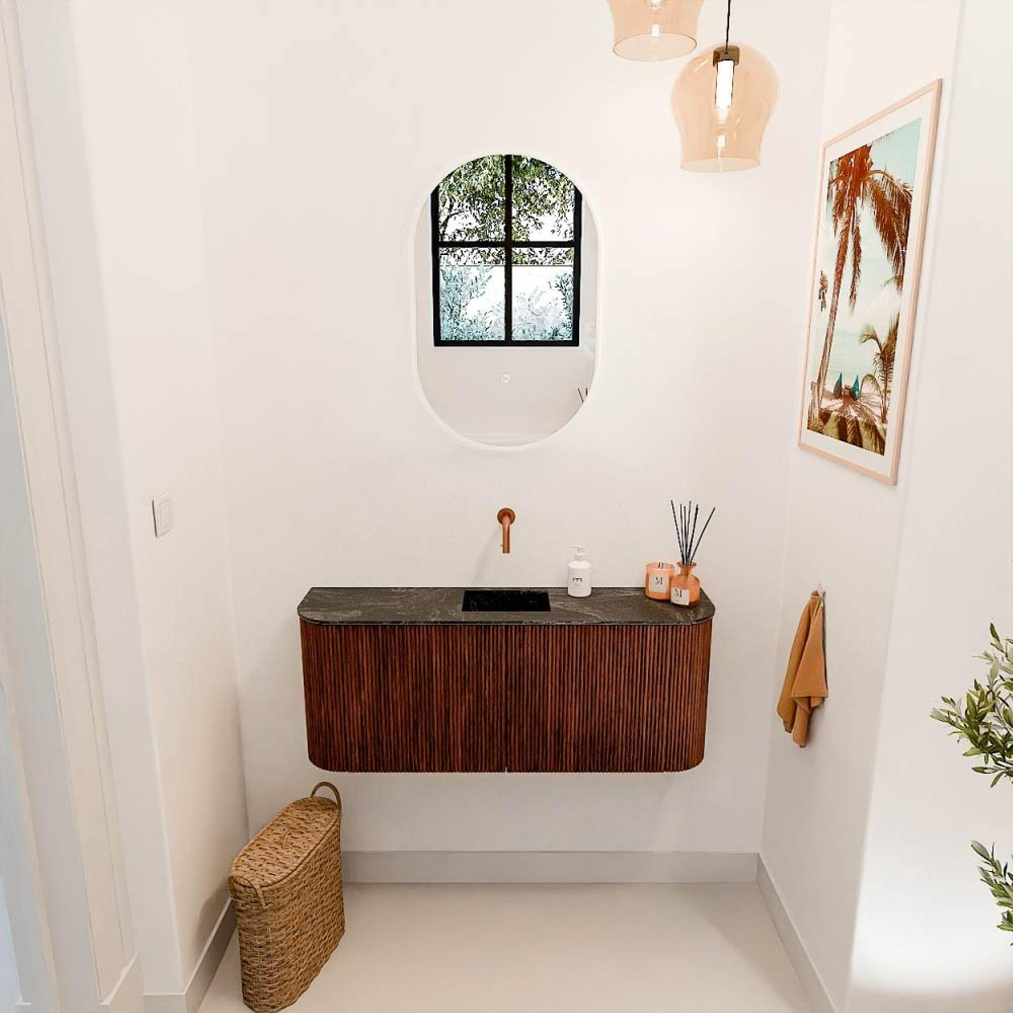 Mondiaz JOYA-DLUX 103.2cm meuble de salle de bains - arrondis gauche et droite couleur Ruby - Vasque FAYE position Milieu Sans trou de robinet couleur Lava.