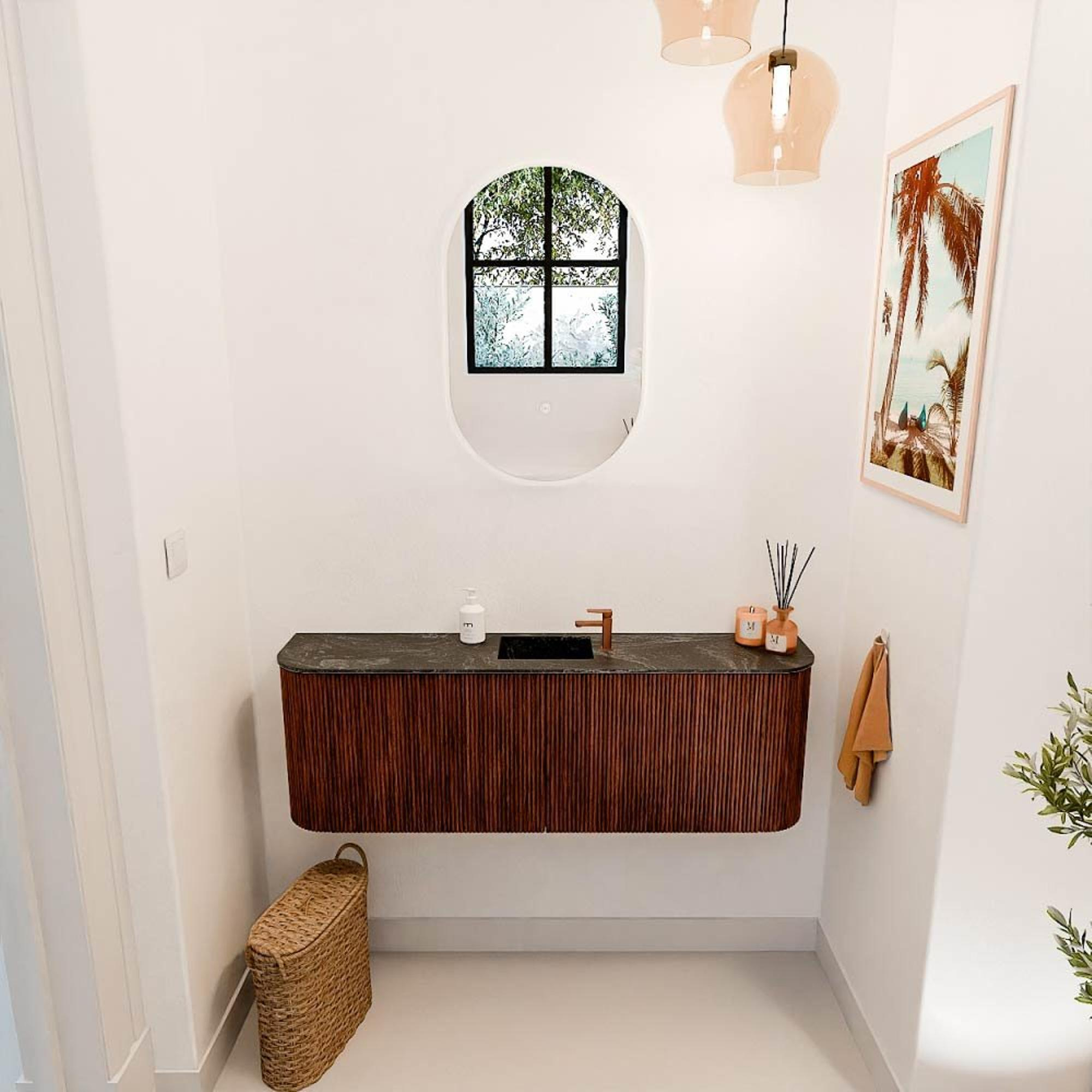 Mondiaz JOYA-DLUX Meuble de salle de bains 123,2cm - arrondis gauche et droite couleur Ruby - Vasque FAYE position Milieu 1 trou de robinet couleur Lava