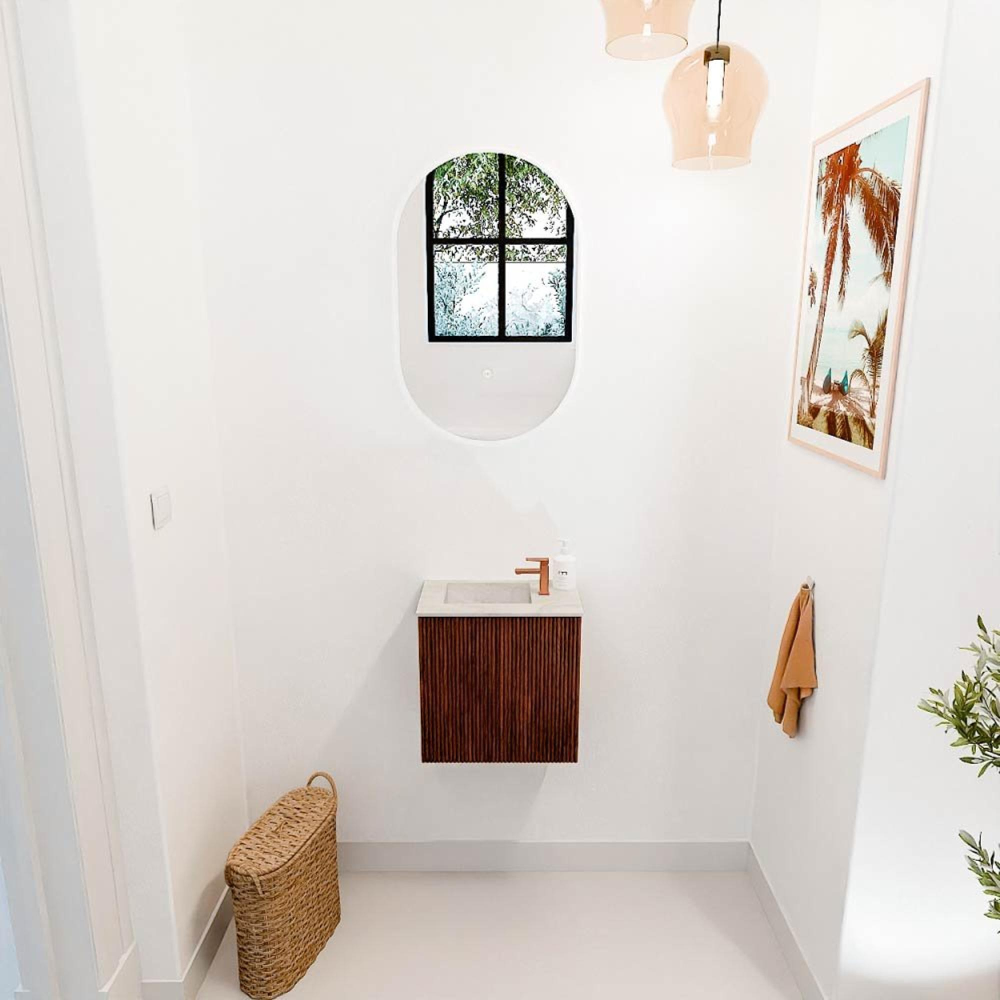 Mondiaz JOYA-DLUX Meuble de toilette 40cm - couleur Ruby - Vasque FAYE position Gauche 1 trou de robinet couleur Ostra.
