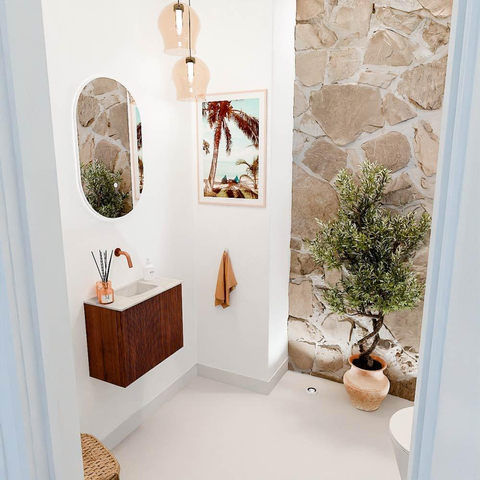 Avec une largeur de 50 cm et une profondeur de 24,5 cm, ce meuble est compact mais étonnamment spacieux. La vasque est intelligemment conçue avec une position centrale, sans trou de robinet, afin que vous puissiez choisir vous-même le robinet qui correspond le mieux à vos souhaits. Cela vous offre une liberté maximale en matière de style et de fonctionnalité. De plus, le format pratique permet au meuble de s'intégrer parfaitement dans des toilettes ou salles de bains plus petites, sans compromettre l'espace de rangement ou le confort.