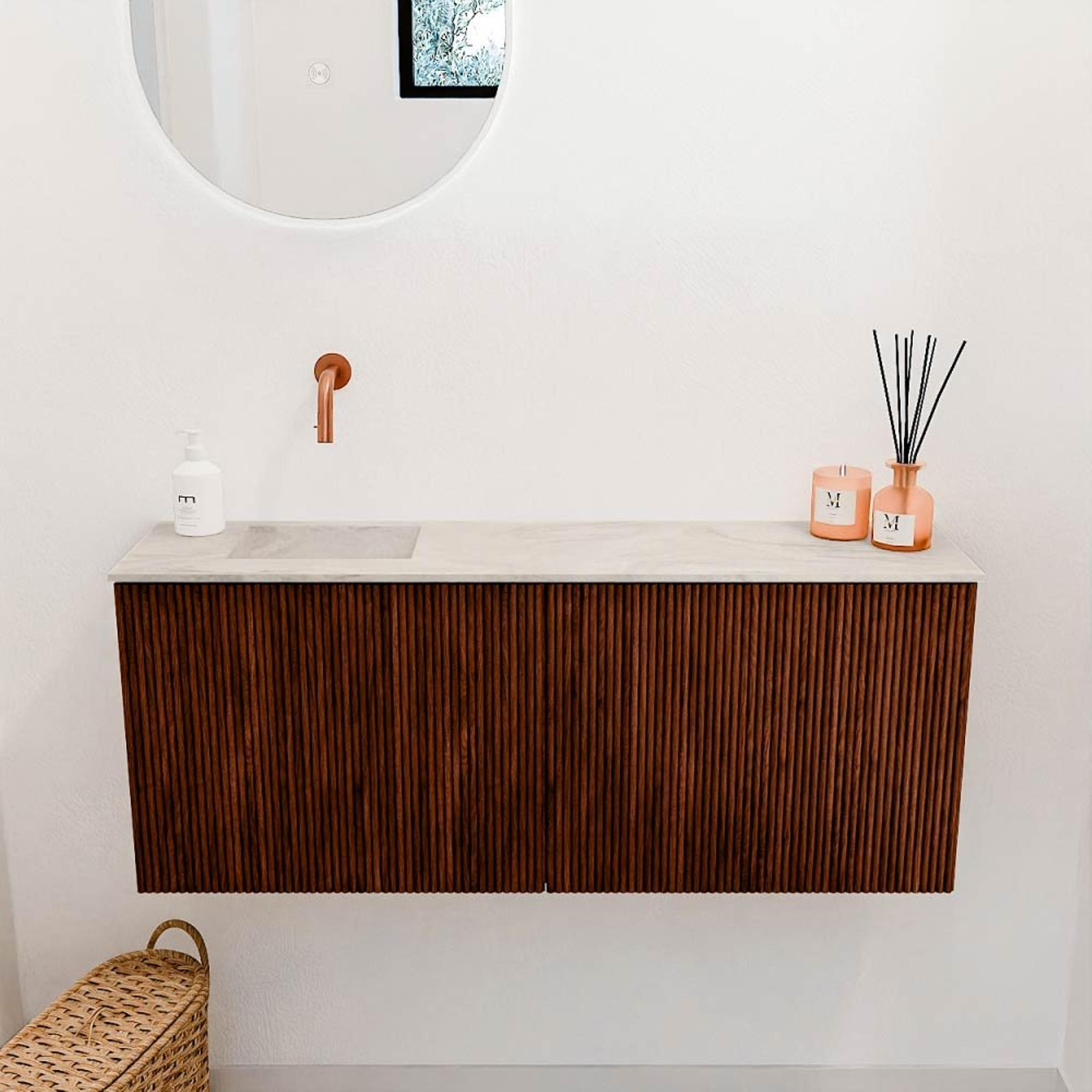 Mondiaz JOYA-DLUX 100cm meuble de salle de bains - couleur Ruby - Vasque FAYE position Gauche Sans trou de robinet couleur Ostra.
