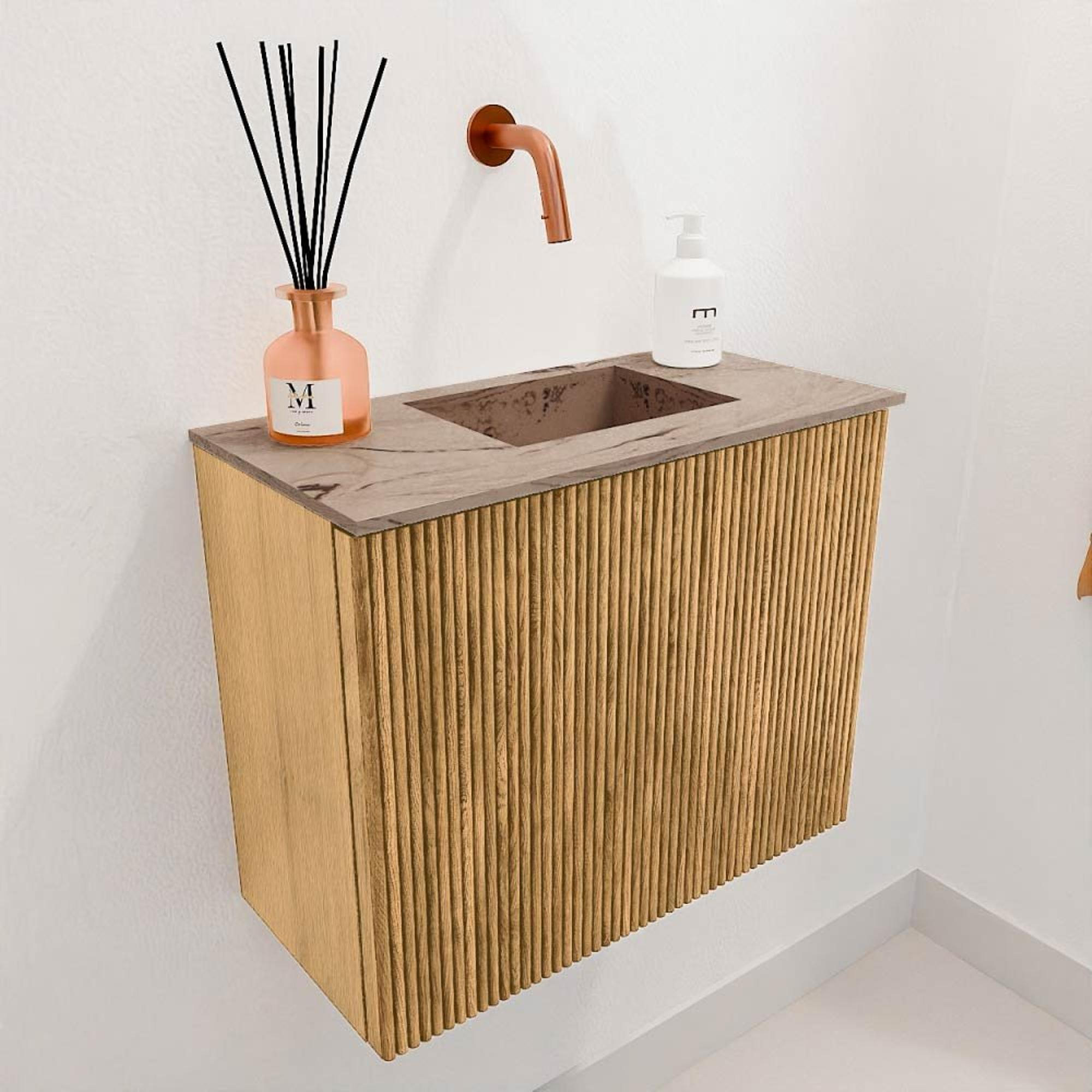 Mondiaz JOYA-DLUX 50cm meuble de toilette - couleur Chêne - Vasque FAYE position Droite Sans trou de robinet couleur Arena.