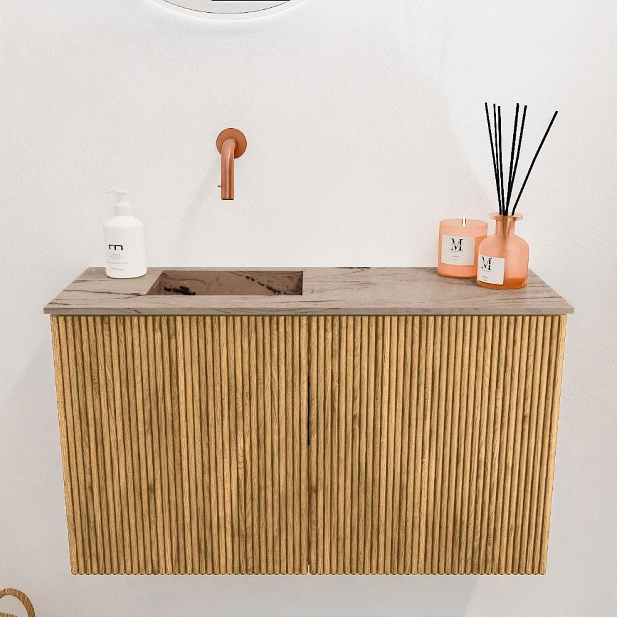 Mondiaz JOYA-DLUX Meuble de toilette 70cm - couleur Oak - Vasque FAYE position Gauche Sans trou de robinet couleur Arena
