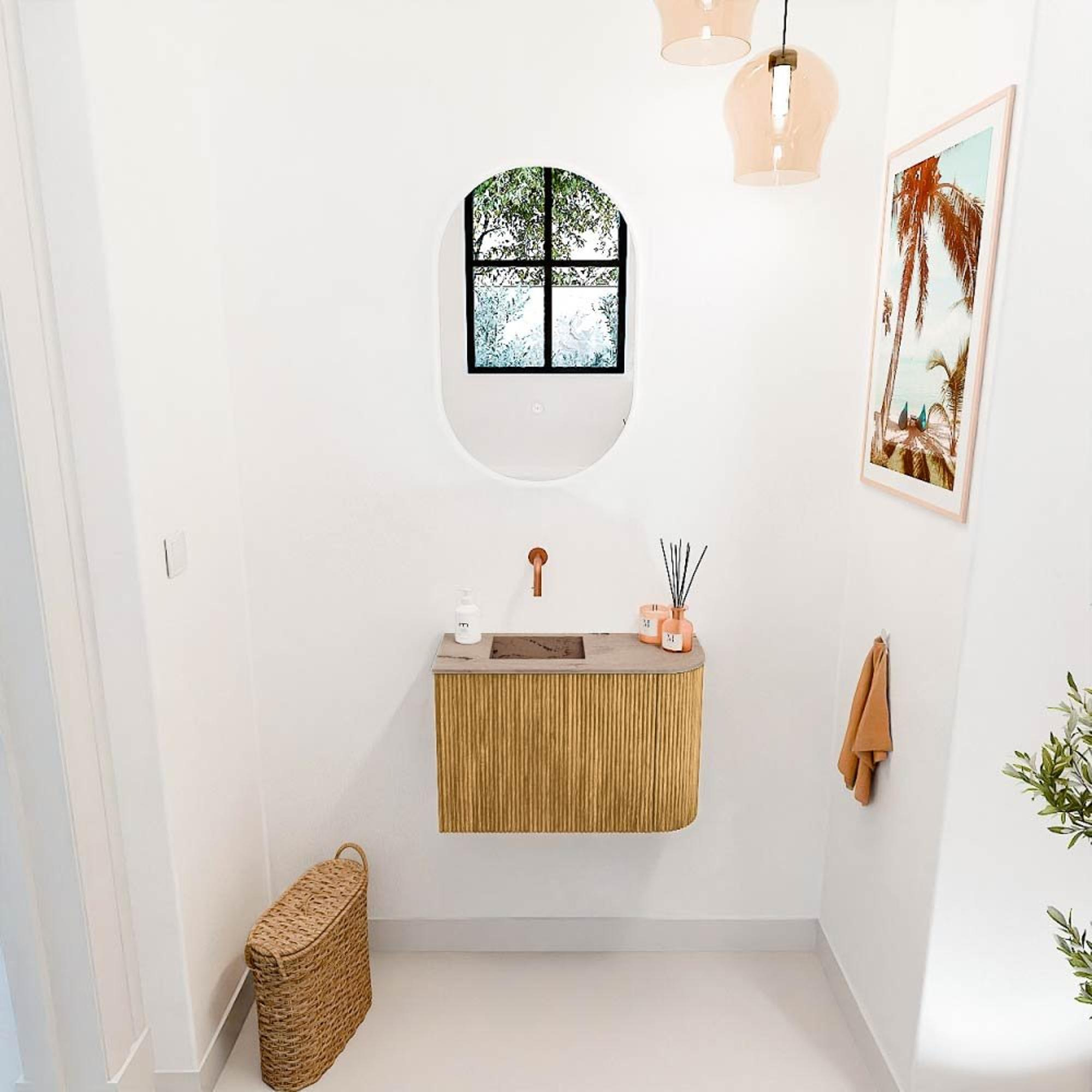 Mondiaz JOYA-DLUX Meuble de salle de bains 61,6cm - arrondi droite couleur Chêne - Vasque FAYE position Gauche Sans trou de robinet couleur Arena
