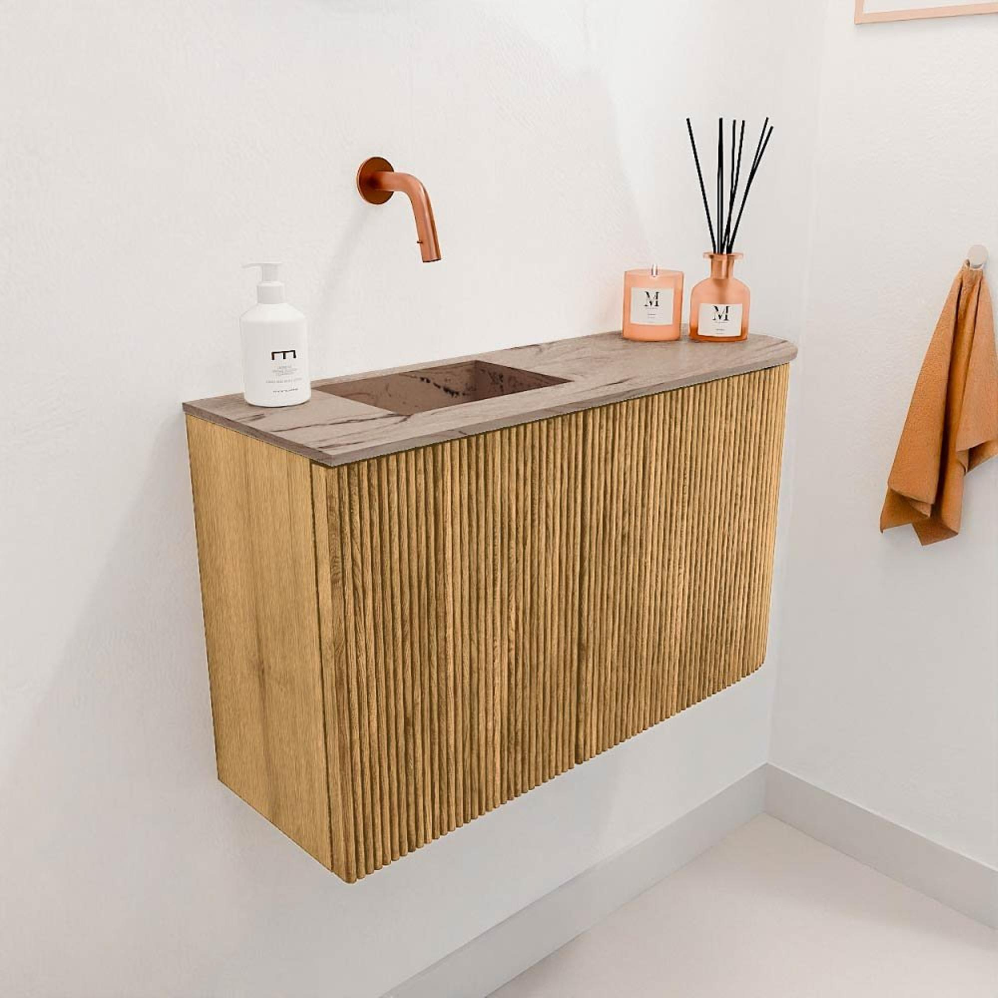 Mondiaz JOYA-DLUX 71.6cm meuble de toilette - arrondi droit couleur Oak - Vasque FAYE position Gauche Sans trou de robinet couleur Arena