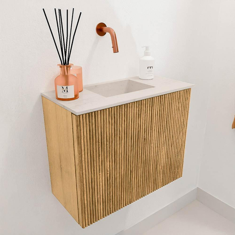 Mondiaz JOYA-DLUX Meuble de salle de bains 50cm - couleur Oak - Vasque FAYE position Milieu Sans trou de robinet couleur Meli