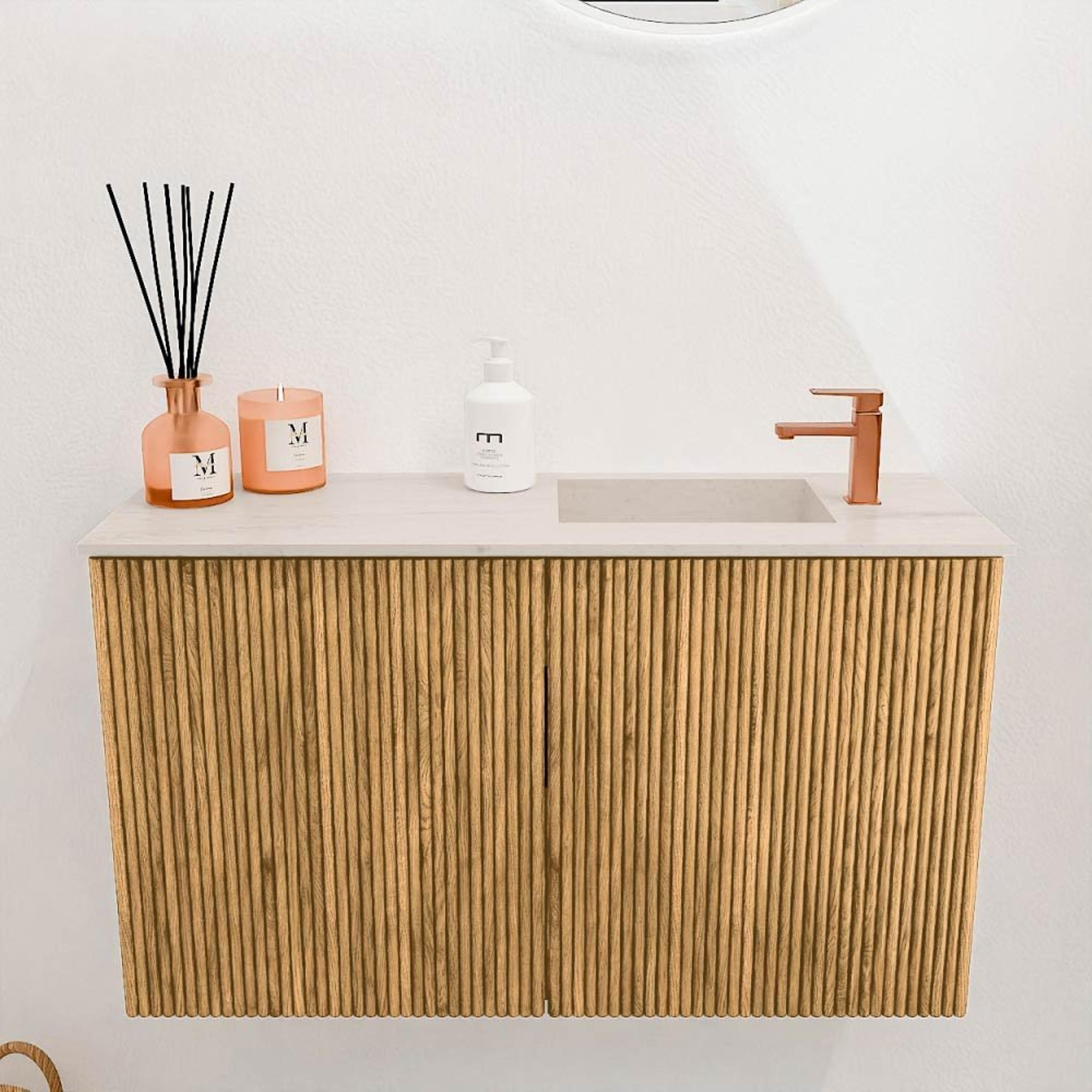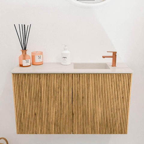 Mondiaz JOYA-DLUX 70cm meuble de salle de bains - couleur Oak - Vasque FAYE position Droite 1 trou de robinet couleur Meli.