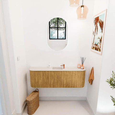 Mondiaz JOYA-DLUX Meuble de salle de bains 123.2cm - arrondis gauche et droite couleur Oak - Vasque FAYE position Milieu 1 trou de robinet couleur Meli.