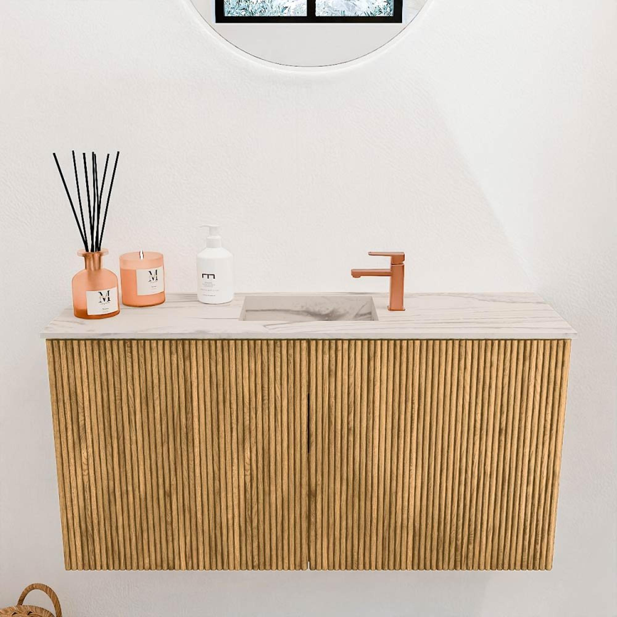 Mondiaz JOYA-DLUX 80cm meuble de salle de bains - couleur Oak - Vasque FAYE position Milieu 1 trou de robinet couleur Nata.