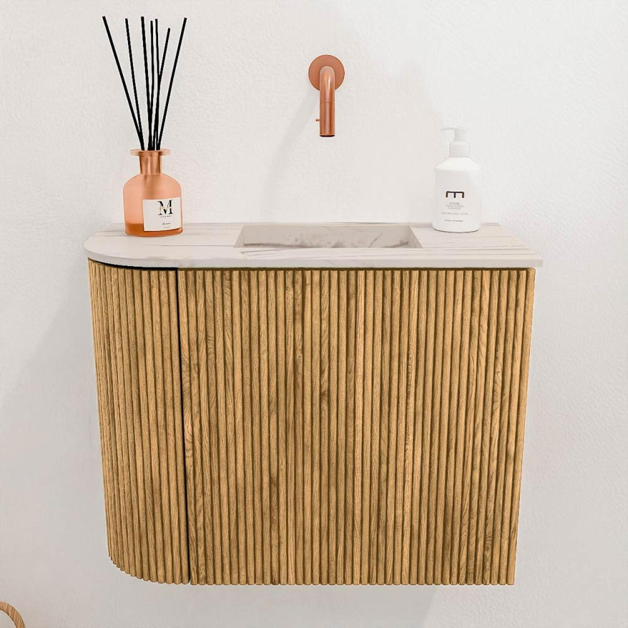 Mondiaz JOYA-DLUX Meuble de toilette 51.6cm - arrondi gauche couleur Chêne - Vasque FAYE position Droite Sans trou de robinet couleur Nata