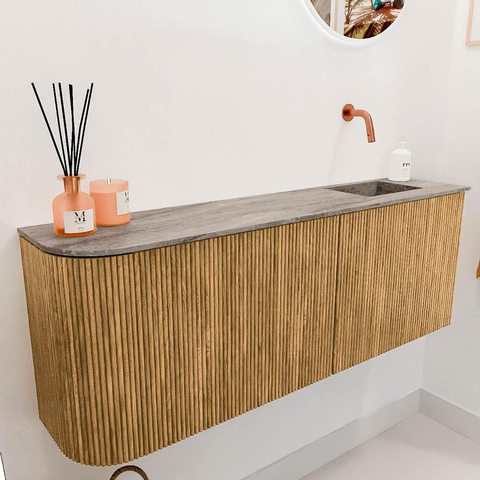 Mondiaz JOYA-DLUX Meuble de salle de bains 111.6cm - arrondi gauche couleur Chêne - Vasque FAYE position Droite Sans trou de robinet couleur Oza