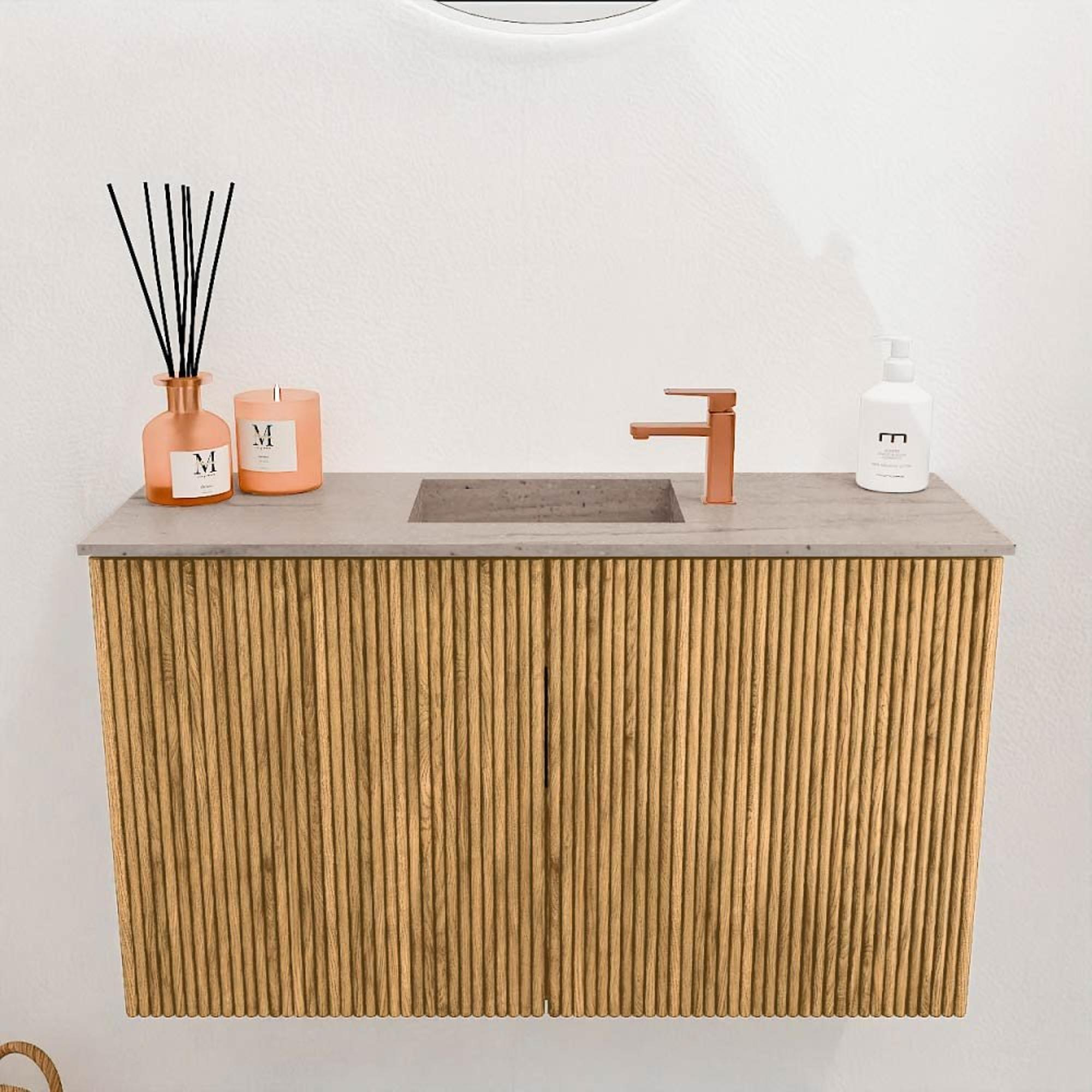 La finition en bois de chêne chaleureux confère à ce meuble une apparence intemporelle et naturelle qui s'adapte facilement à divers styles de salle de bains. Que vous choisissiez un intérieur moderne, campagnard ou industriel, ce meuble ajoute toujours une touche d'élégance. La subtile couleur Saba de la vasque crée une combinaison harmonieuse qui apporte calme et équilibre. Ainsi, vous profitez d'une salle de bains qui est non seulement pratique mais aussi un plaisir pour les yeux.