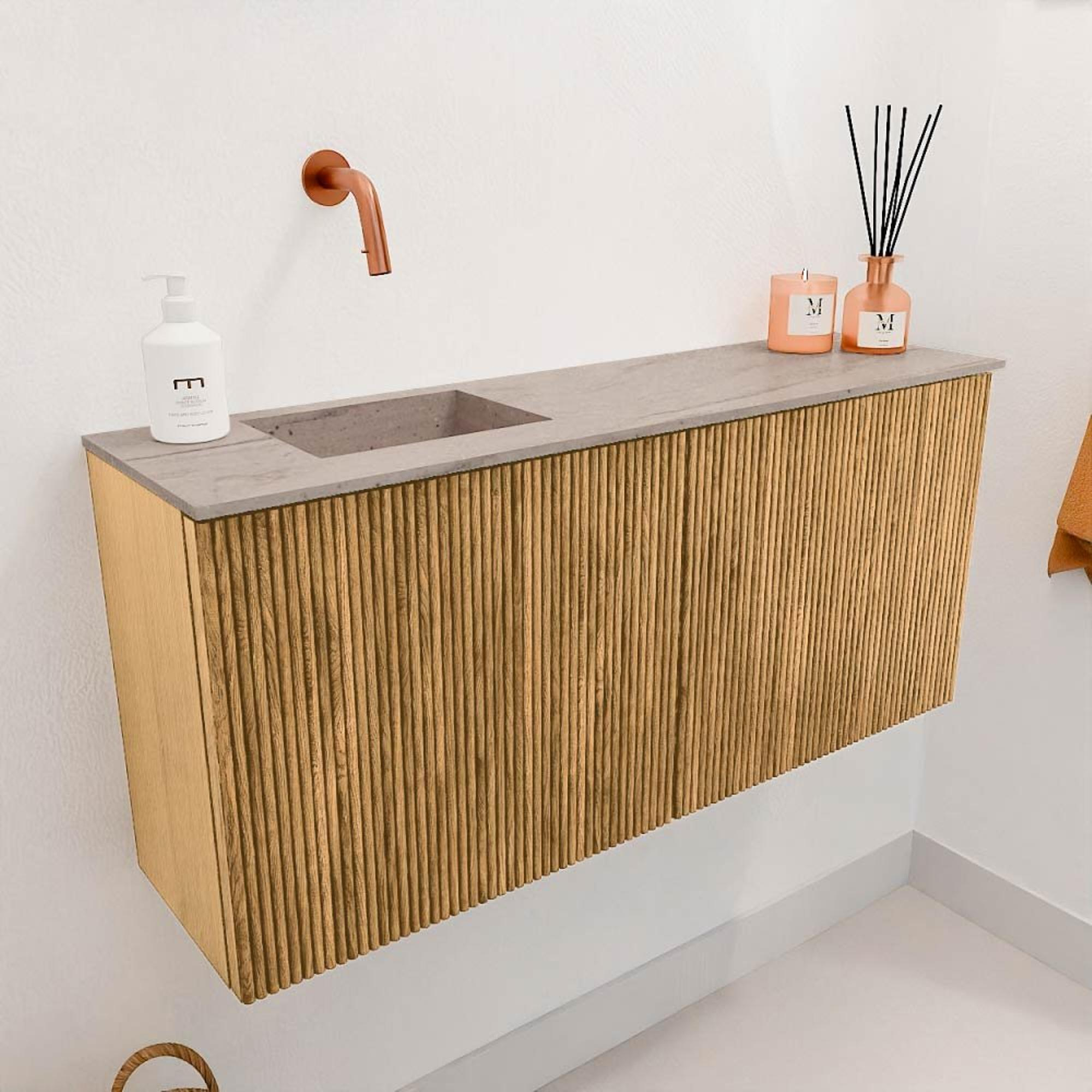 Mondiaz JOYA-DLUX 90cm meuble de toilette - couleur Oak - Vasque FAYE position Gauche Sans trou de robinet couleur Saba