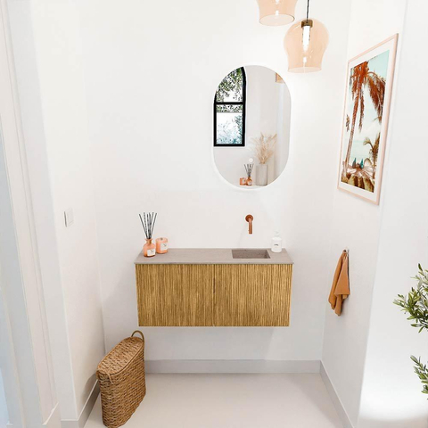 Mondiaz JOYA-DLUX 90cm meuble de toilette - couleur Chêne - Vasque FAYE position Droite Sans trou de robinet couleur Saba.