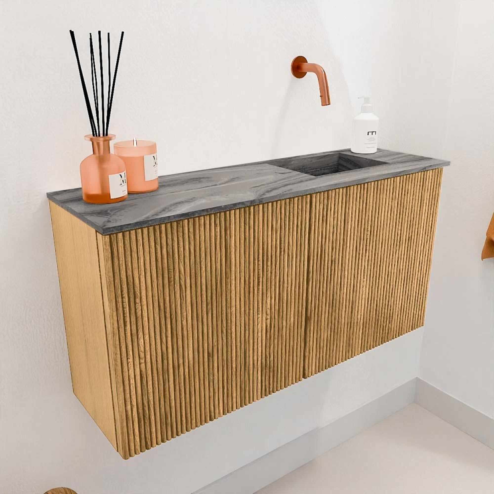 Mondiaz JOYA-DLUX Meuble de salle de bains - 80cm - couleur Oak - Vasque FAYE position Droite Sans trou de robinet couleur Sombra