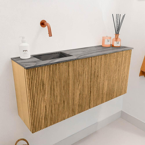 Mondiaz JOYA-DLUX Meuble de salle de bains 90cm - couleur Oak - Vasque FAYE position Gauche Sans trou de robinet couleur Sombra.