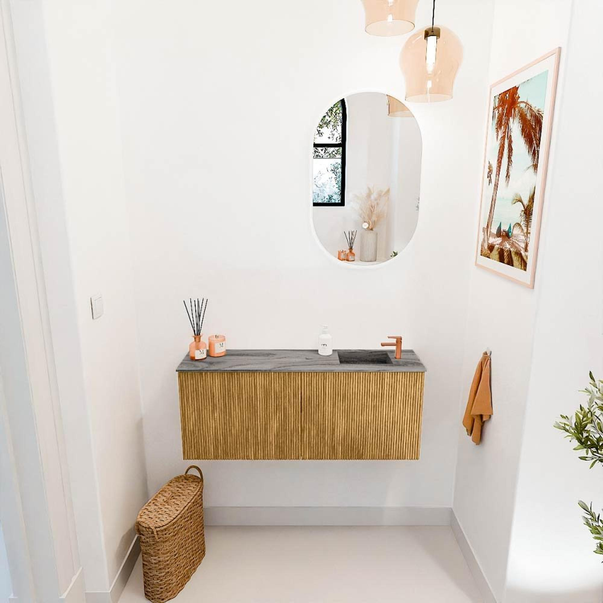 Mondiaz JOYA-DLUX 100cm meuble de toilette - couleur Oak - Vasque FAYE position Droite 1 trou de robinet couleur Sombra.
