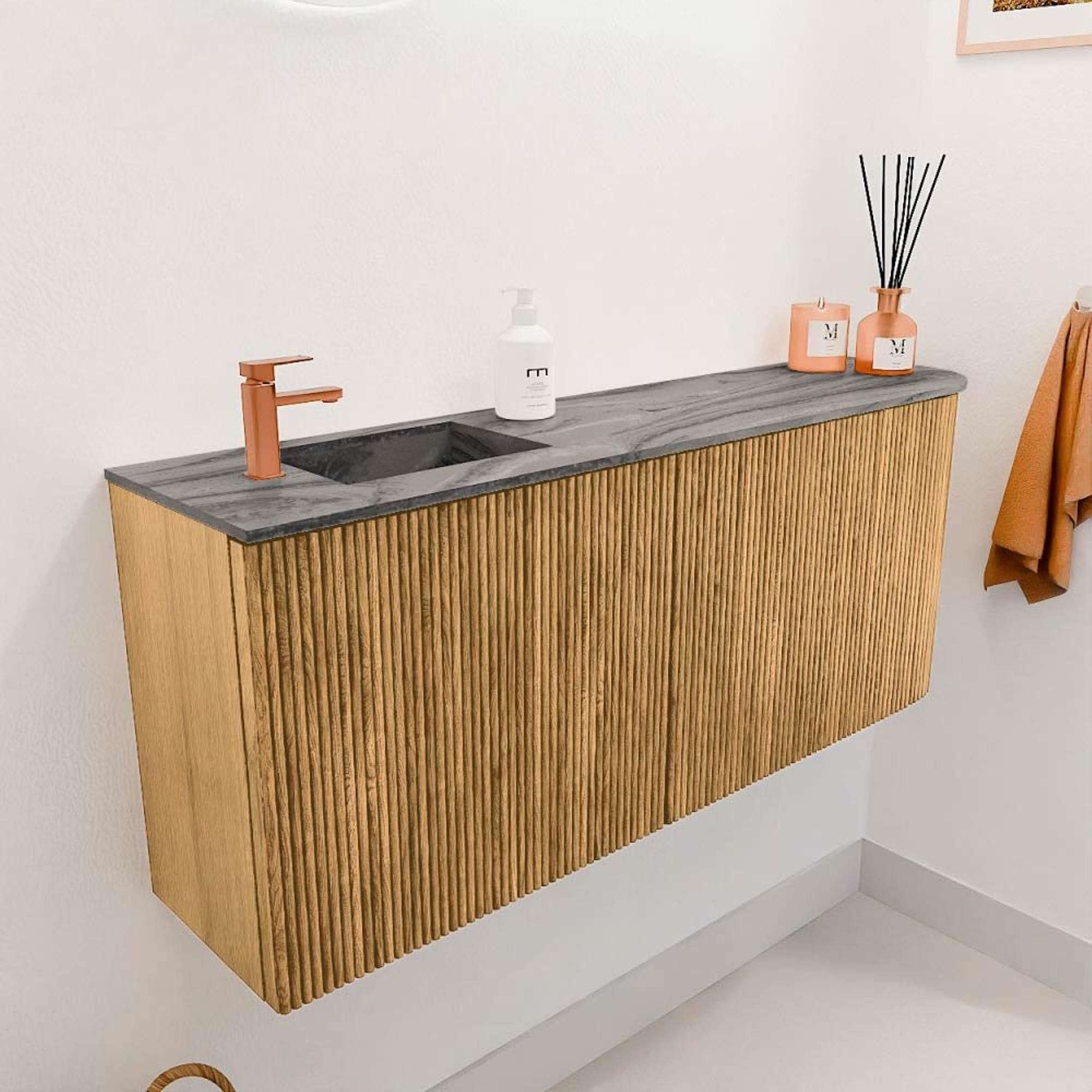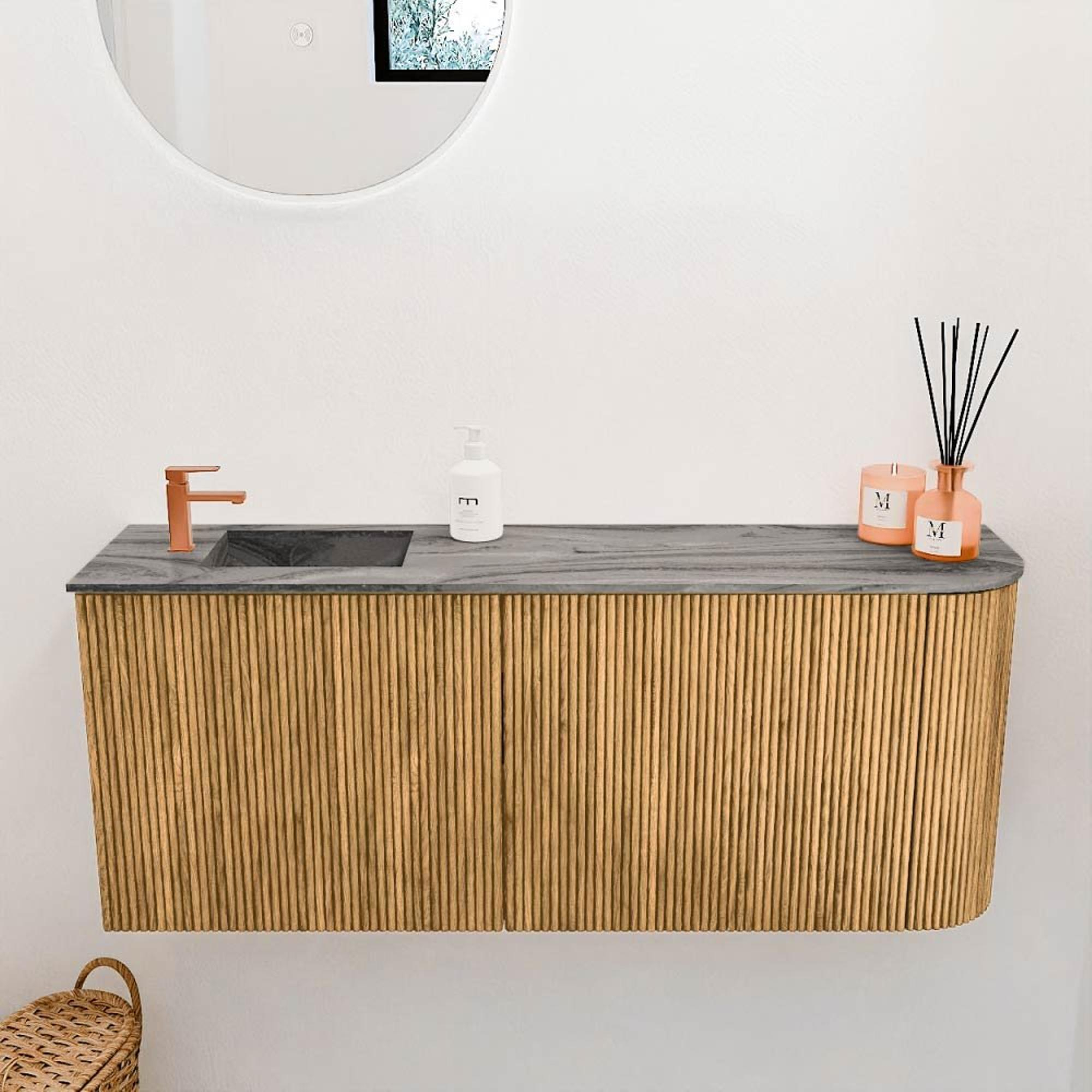 Mondiaz JOYA-DLUX Meuble de salle de bains 101.6cm - arrondi droit couleur Chêne - Vasque FAYE position Gauche 1 trou de robinet couleur Sombra.