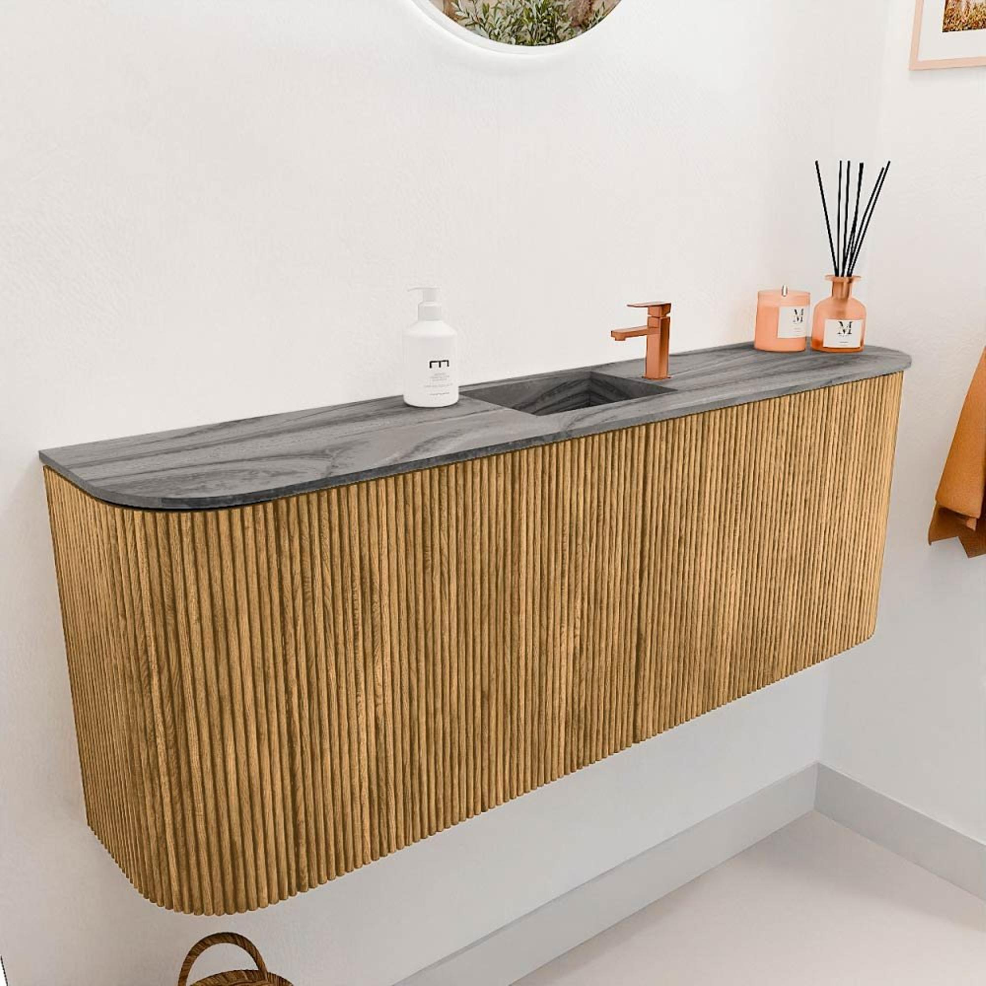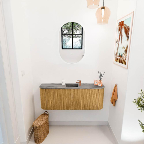 Mondiaz JOYA-DLUX Meuble de salle de bains 113,2cm - arrondi gauche et droite couleur Chêne - Vasque FAYE position Milieu 1 trou de robinet couleur Sombra.