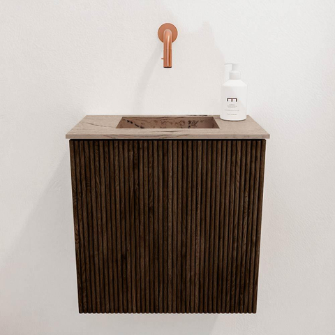 Mondiaz JOYA-DLUX Meuble de toilette 40cm - couleur Walnut - Vasque FAYE position Milieu Sans trou de robinet couleur Arena