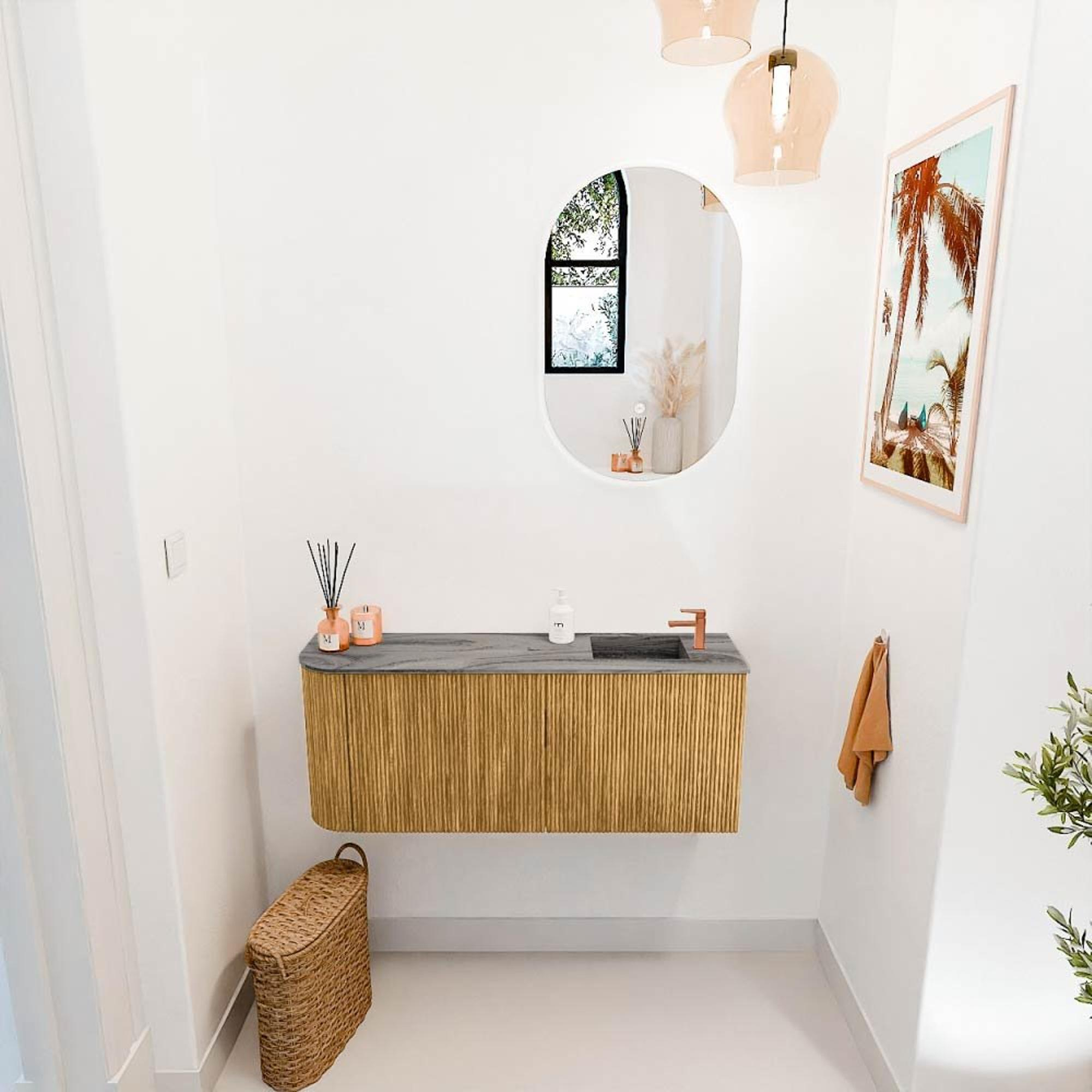 Mondiaz JOYA-DLUX Meuble de toilette 101,6cm - arrondi gauche couleur Chêne - Vasque FAYE position Droite 1 trou de robinet couleur Sombra