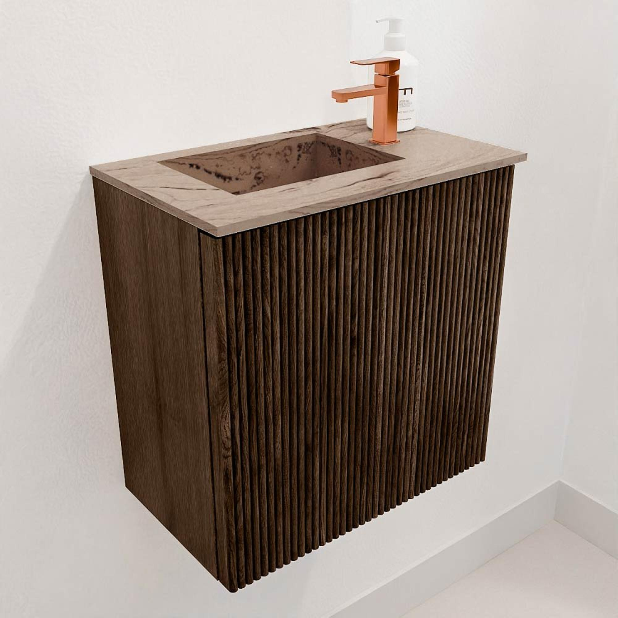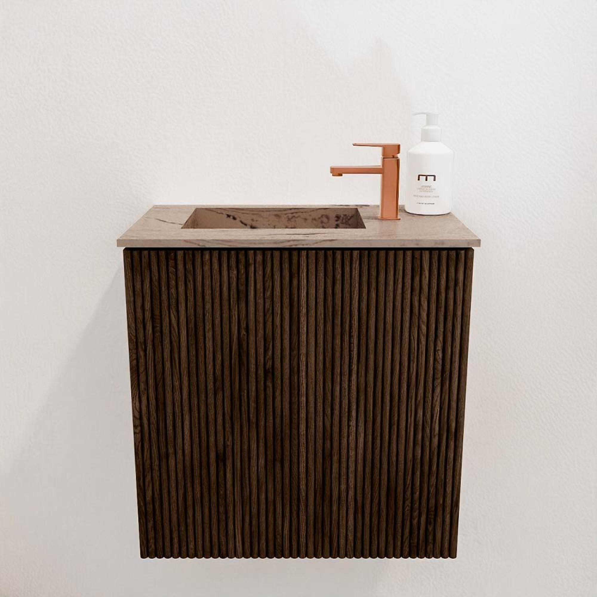 Mondiaz JOYA-DLUX Meuble de toilette 40cm - couleur Walnut - Lavabo FAYE position Gauche 1 trou de robinet couleur Arena.