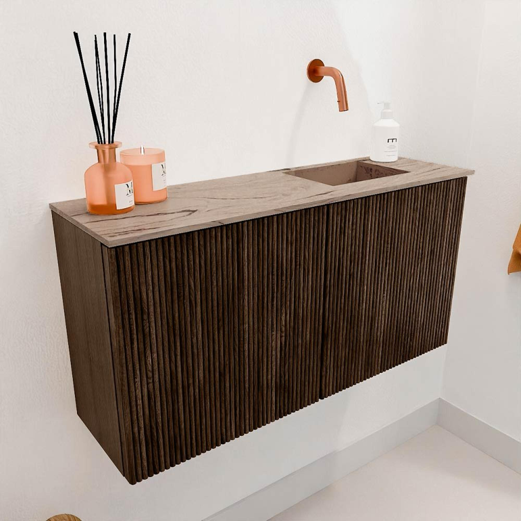Mondiaz JOYA-DLUX Meuble WC 80 cm - couleur Walnut - Lavabo FAYE position Droite Sans trou de robinet couleur Arena.